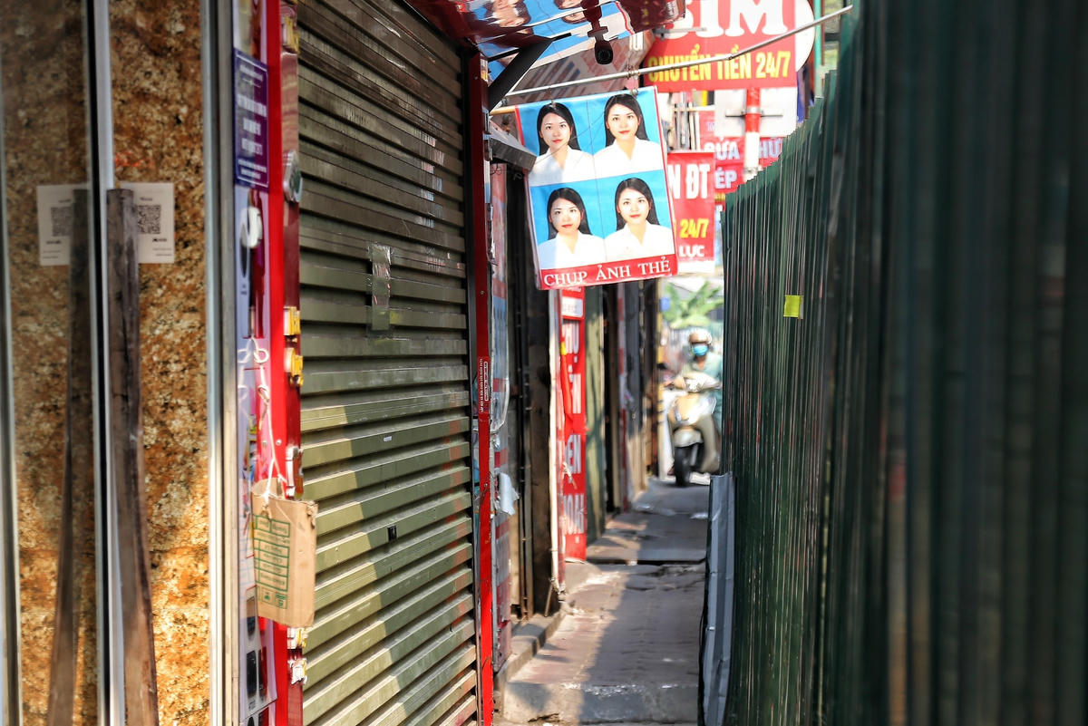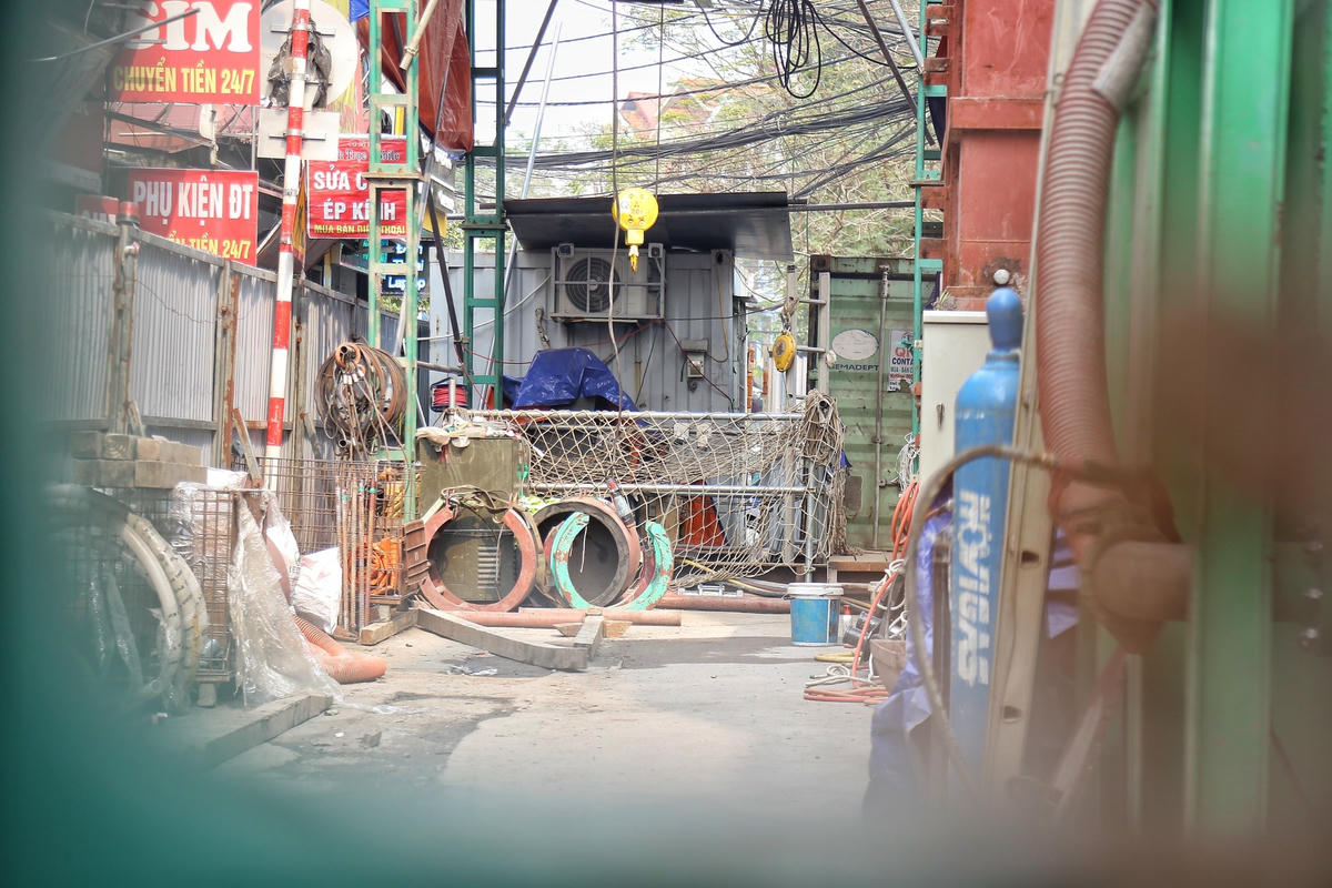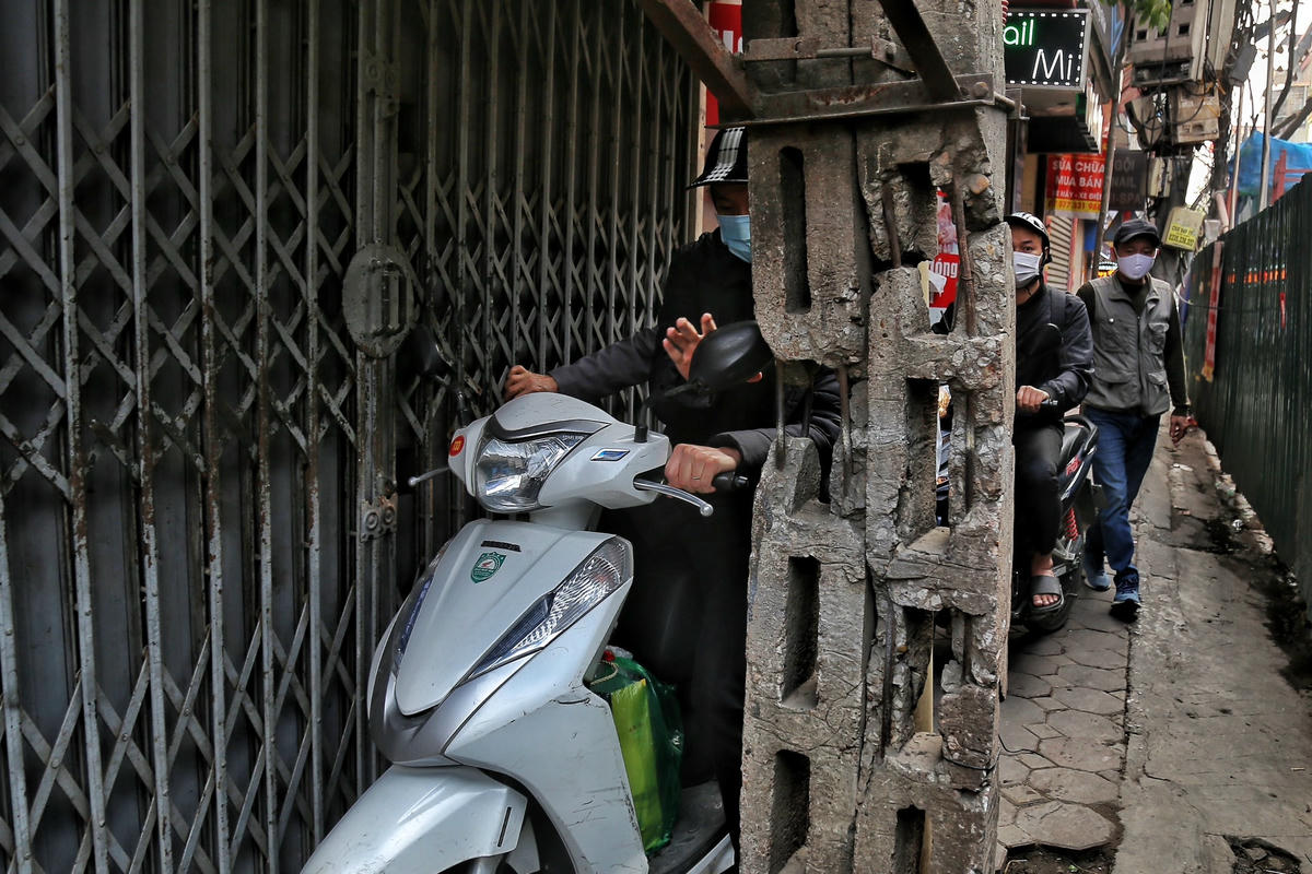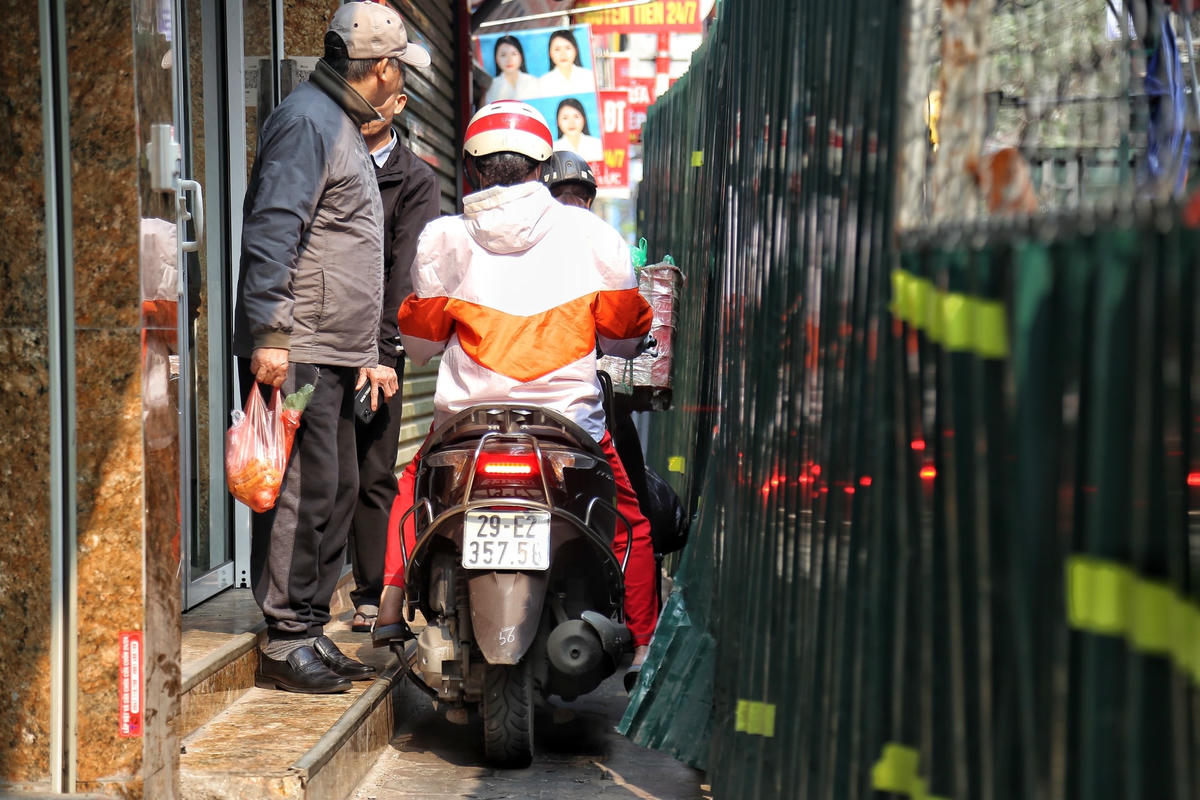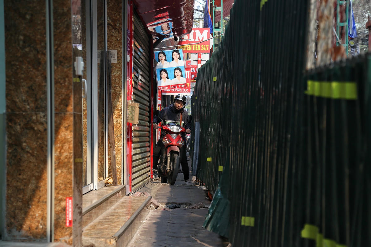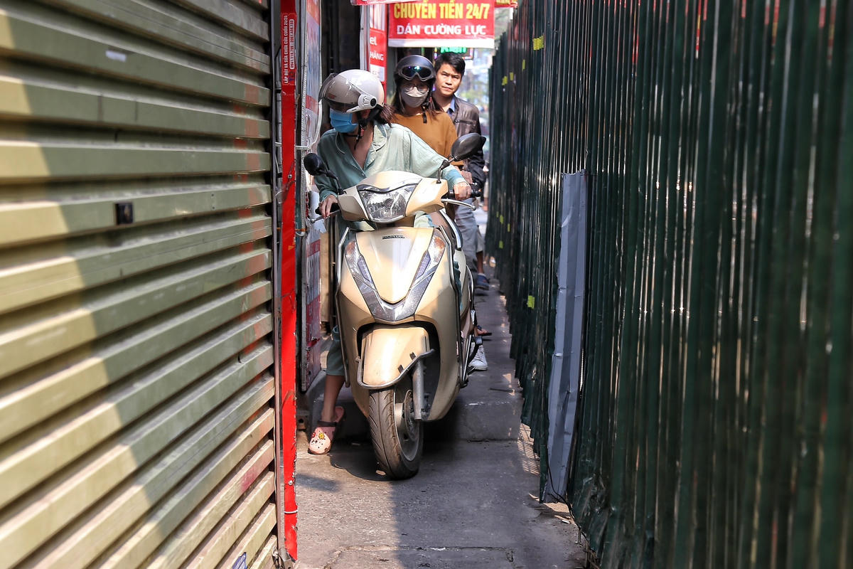 [ẢNH] Quây tôn chiếm hết lòng đường, người dân chật vật đi trên vỉa hè
