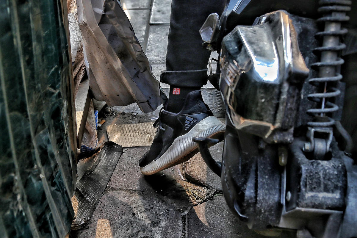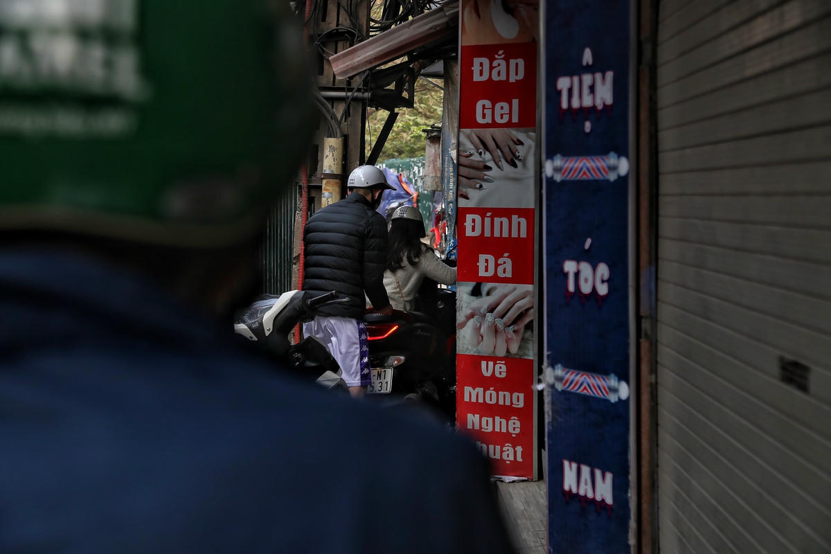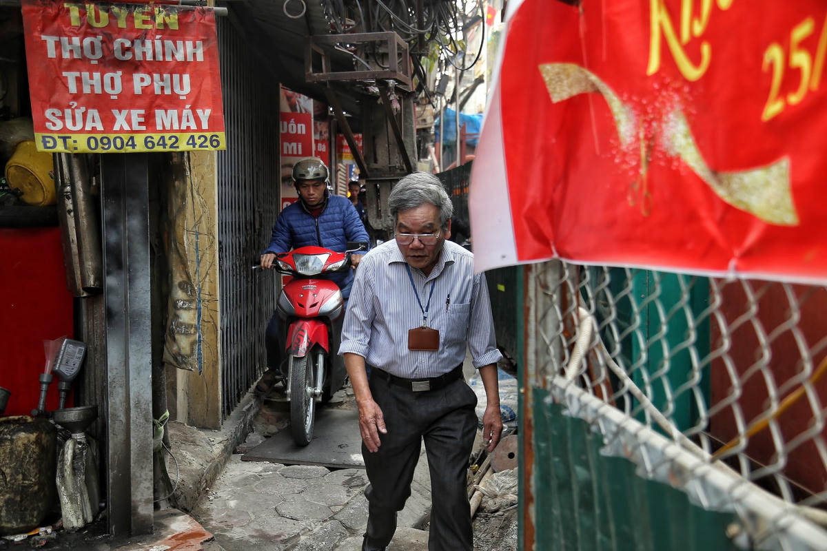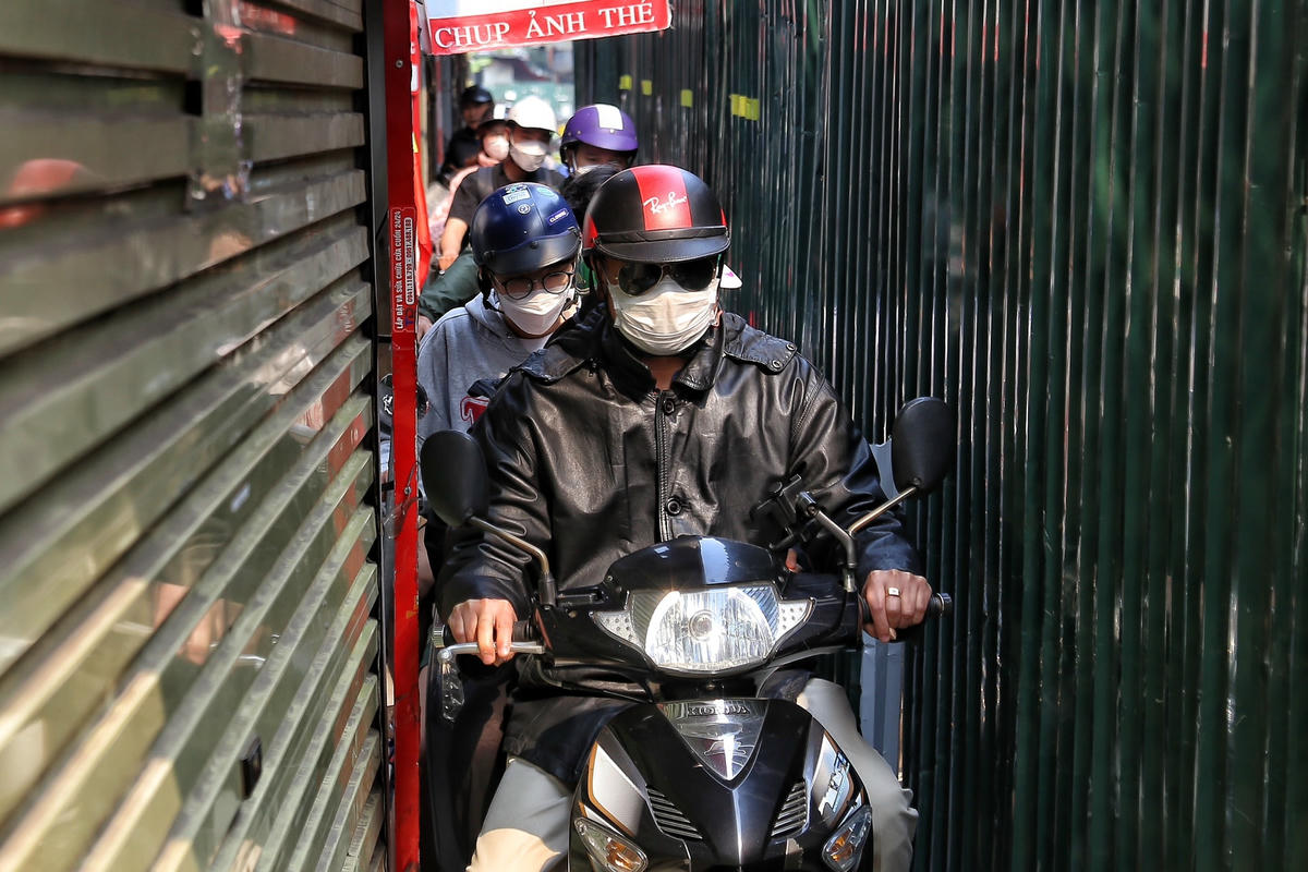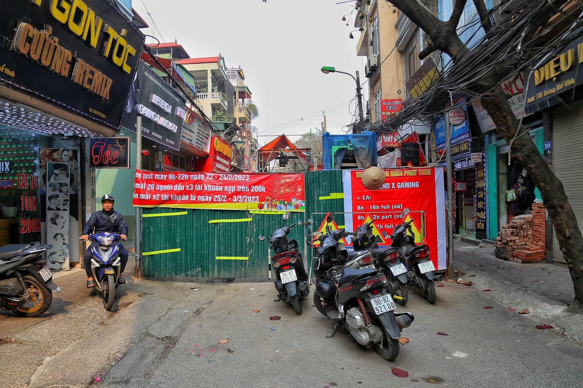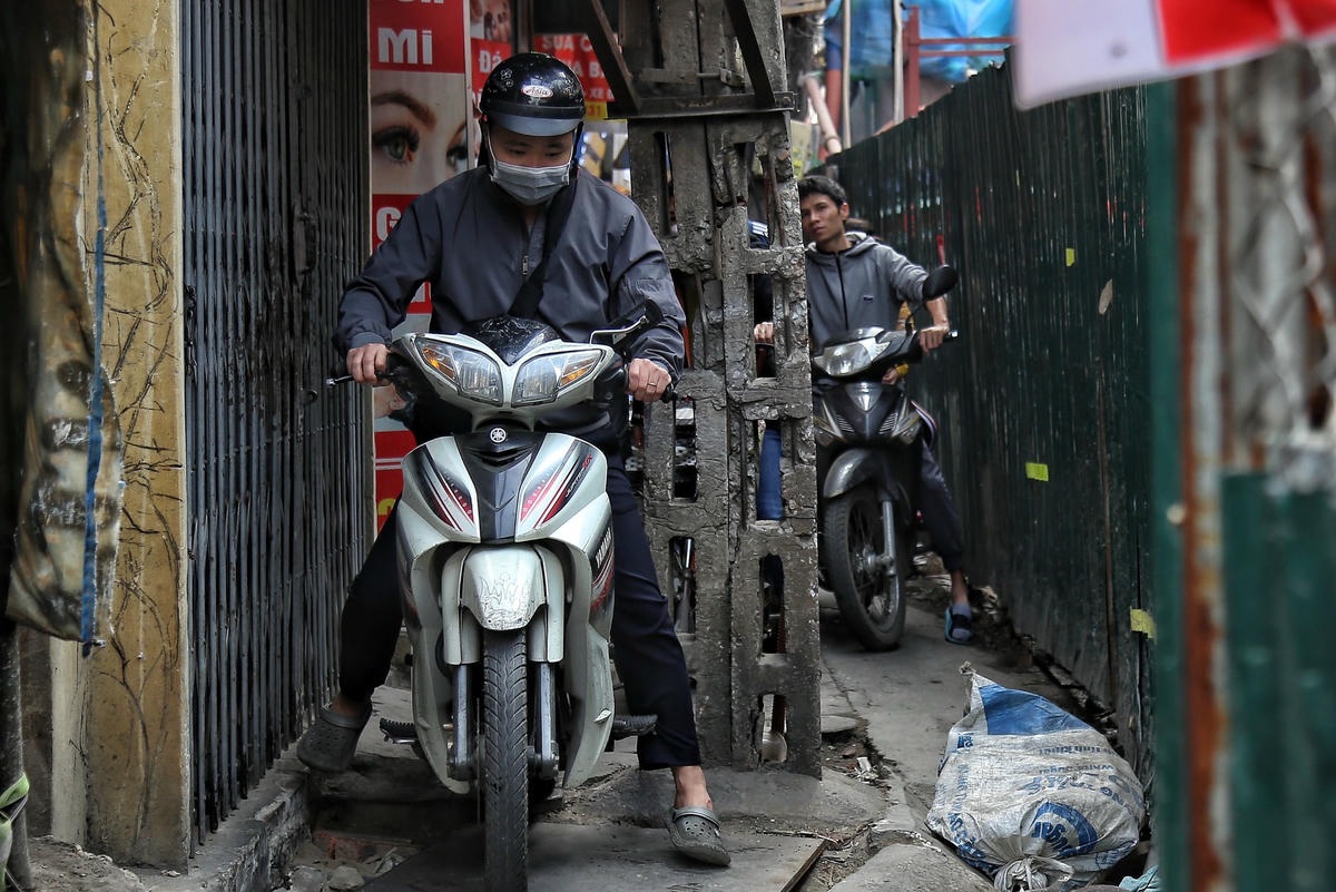 [ẢNH] Quây tôn chiếm hết lòng đường, người dân chật vật đi trên vỉa hè