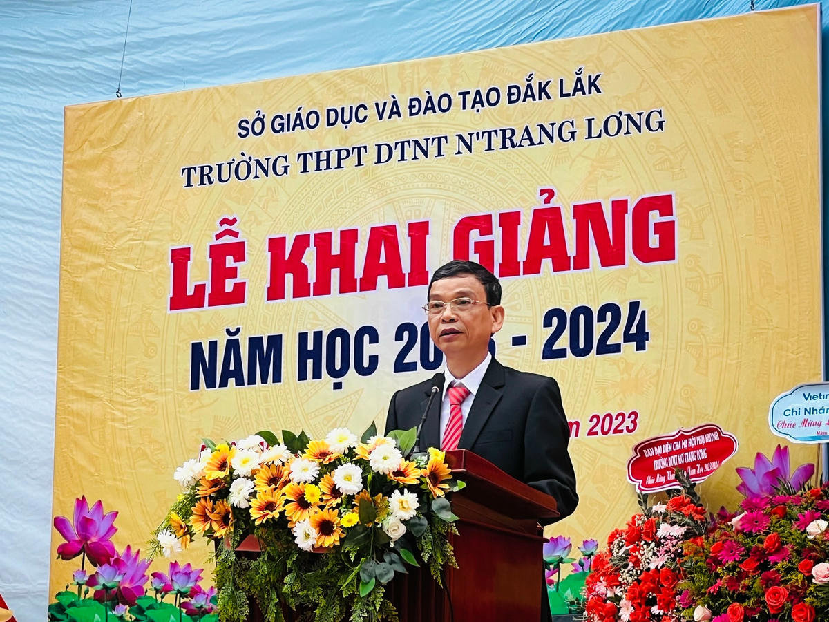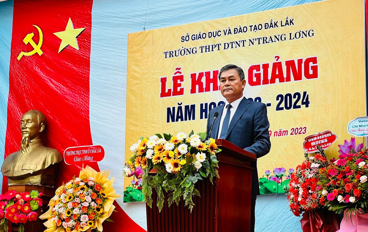 Phát biểu tại Lễ khai giảng năm học mới, Ông Y Biêr Niê - Phó Bí thư Tỉnh ủy Đắk Lắk cũng chúc mừng, ghi nhận những thành tựu nhà trường đã đạt được trong thời gian qua. Năm học mới 2023 - 2024, ông Y Biêr Niê đề nghị thầy trò Trường THPT Dân tộc nội trú N'Trang Lơng tiếp tục chú trọng đạo đức lối sống cho học sinh; nâng cao hơn nữa chất lượng dạy và học; đẩy mạnh hoạt động STEM trong nhà trường; triển khai hoạt động trải nghiệm sáng tạo, mô hình trường học gắn với sản xuất kinh doanh; tăng cường chất lượng giáo dục đại trà, giáo dục mũi nhọn; chú trọng công tác giáo dục dân tộc, đẩy mạnh hoạt động giáo dục hướng nghiệp, phân luồng học sinh và giáo dục khởi nghiệp trong nhà trường.
