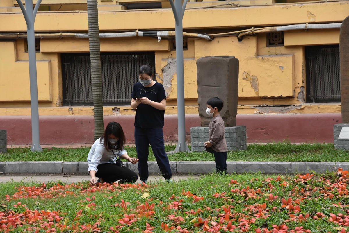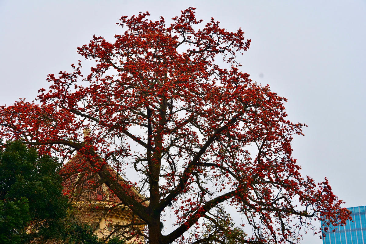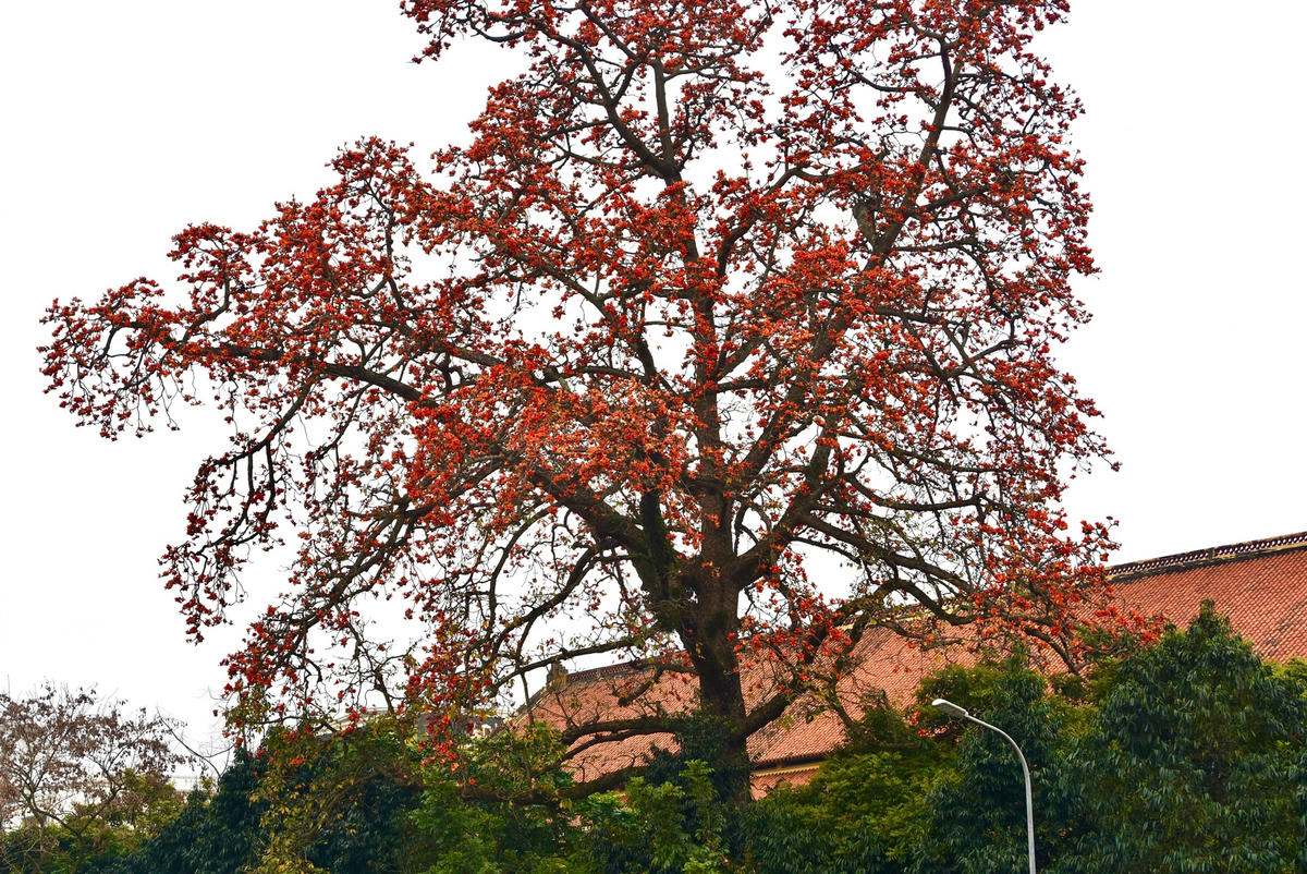 Những ngày này, khuôn viên của Bảo tàng Lịch sử Quốc gia trở nên hấp dẫn hơn bởi sắc đỏ của cây gạo cổ thụ, trở thành địa điểm check-in hấp dẫn với người dân Thủ đô.