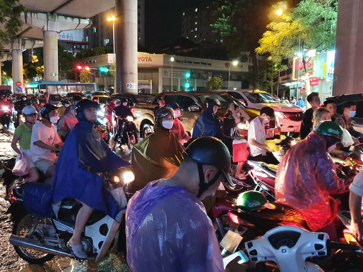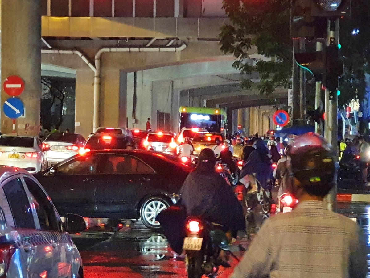 [ẢNH] Sau cơn mưa, đường Hà Nội lại thành 'sông', giao thông ùn tắc nghiêm trọng