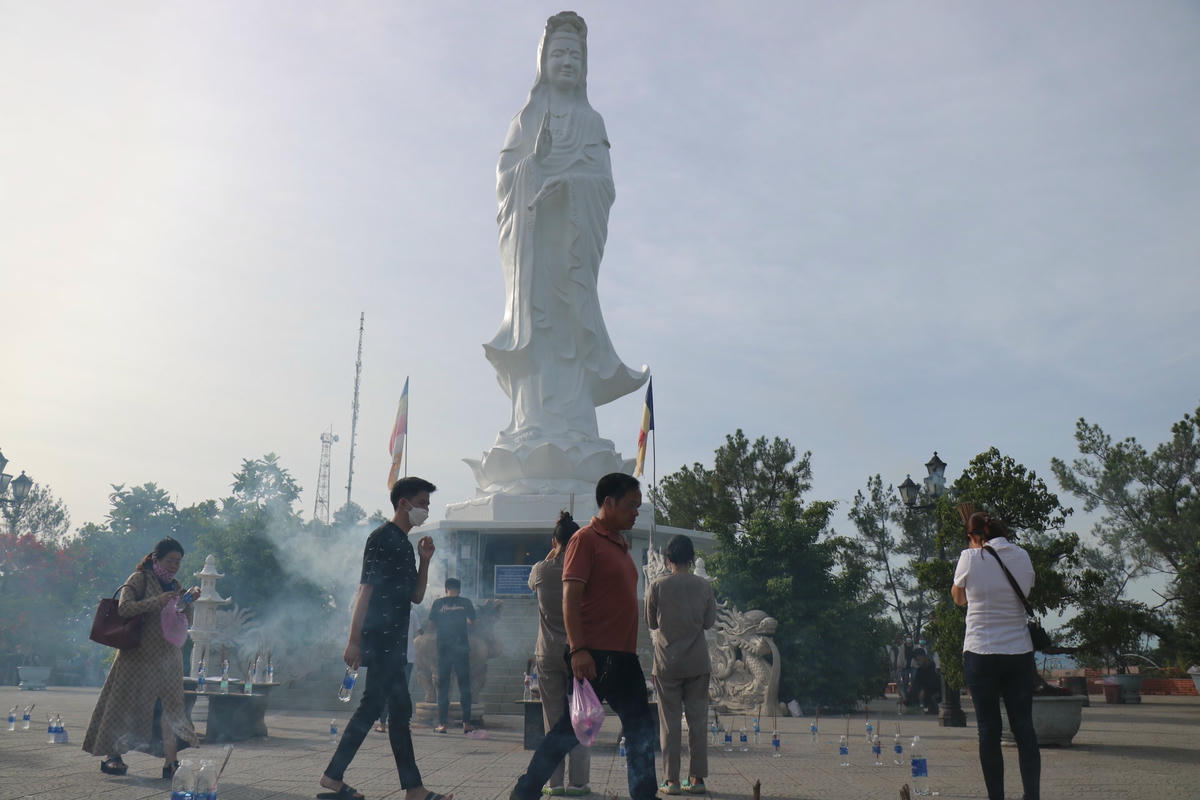 Rất đông sĩ tử tại tỉnh Thừa Thiên - Huế đã về tượng Phật Quan Thế Âm Bồ Tát để dâng hương, cầu nguyện gặp được nhiều may mắn trong kỳ thi THPT Quốc gia 2022.