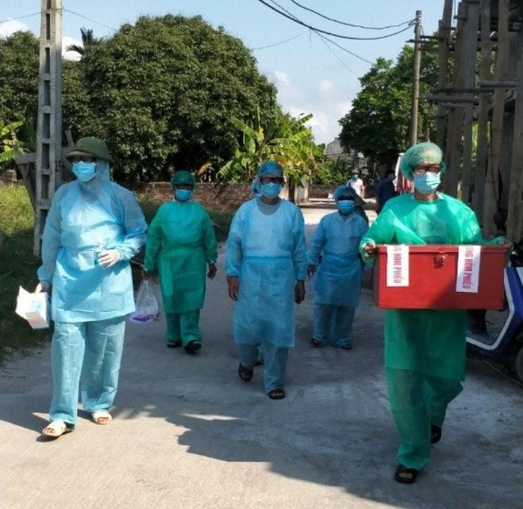 Cán bộ bầu cử ở Thái Bình trong trang phục phòng dịch mang hòm phiếu phụ đến tận giường người bệnh trong khu phong tỏa để đảm bảo ai, trong bất cứ hoàn cảnh nào cũng được tham gia bầu cử.