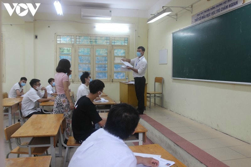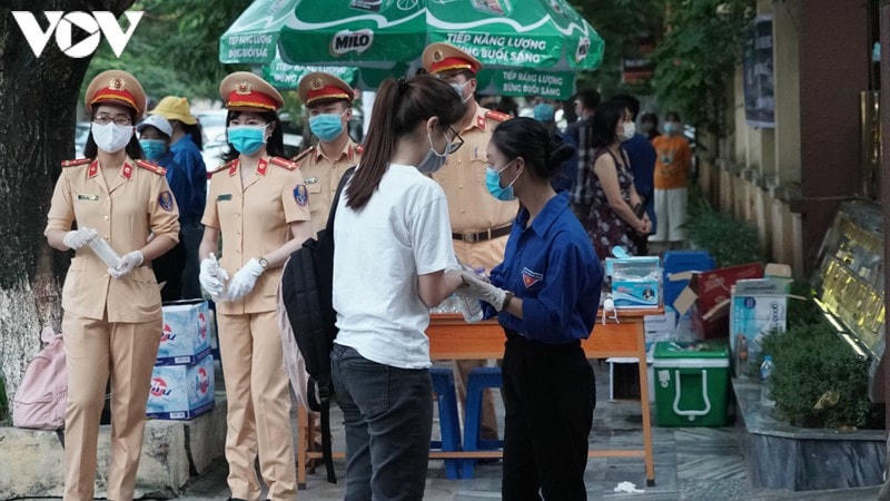 Phụ huynh cùng thí sinh tại Hà Nội và các địa phương khác đều tuân thủ mọi biện pháp phòng dịch Covid-19 để đảm bảo kỳ thi an toàn.