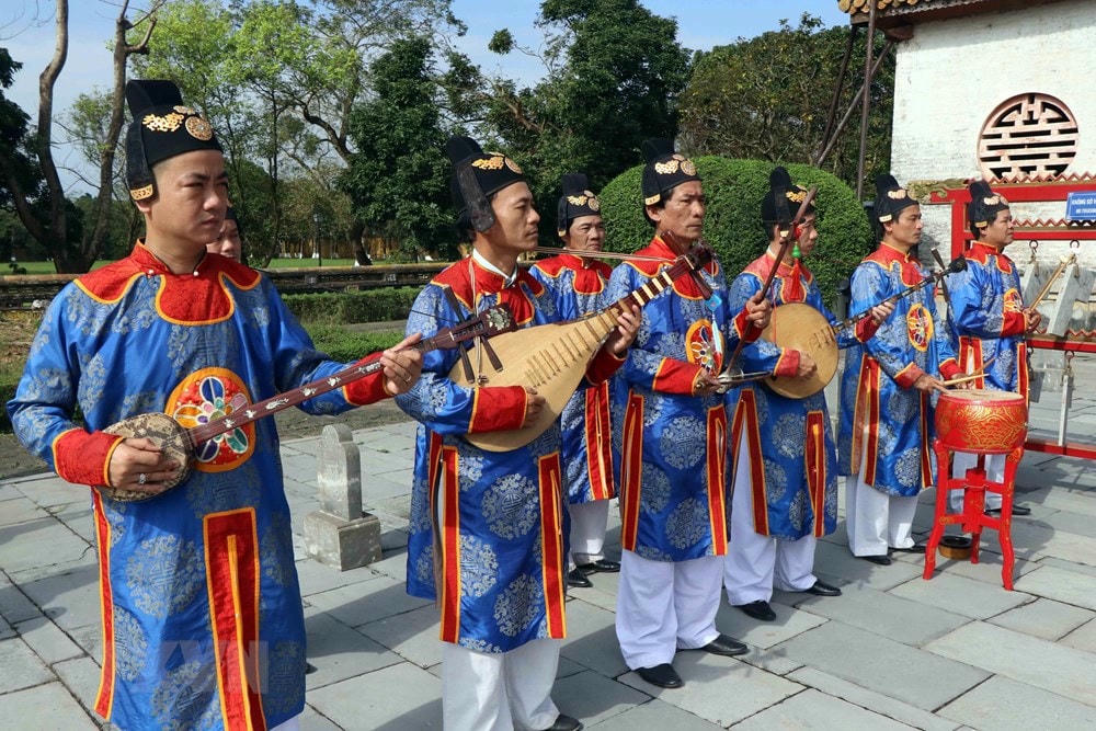 Biểu diễn nhã nhạc cung đình Huế tại sân điện Thái Hòa. (Ảnh: Đỗ Trưởng/TTXVN).Nhạc khí cung đình nhà Nguyễn. (Ảnh: Đỗ Trưởng/TTXVN).Tái hiện các quan văn, võ tiến vào chầu nhà vua tại điện Thái Hòa trong ngày Mùng 1 Tết Nguyên đán. (Ảnh: Đỗ Trưởng/TTXVN).Tái hiện sân khấu hóa lễ Nguyên đán thời Nguyễn tại điện Thái Hòa. (Ảnh: Đỗ Trưởng/TTXVN).Tái hiện cảnh các quan văn, võ đứng chầu nhà vua trước điện Thái Hòa trong ngày Mùng 1 Tết Nguyên đán. (Ảnh: Đỗ Trưởng/TTXVN).Tái hiện sân khấu hóa lễ Nguyên đán thời Nguyễn tại điện Thái Hòa. (Ảnh: Đỗ Trưởng/TTXVN).Tái hiện sân khấu hóa lễ Nguyên đán thời Nguyễn tại điện Thái Hòa. (Ảnh: Đỗ Trưởng/TTXVN).Tái hiện cảnh các quan văn, võ đứng chầu nhà vua trước điện Thái Hòa trong ngày Mùng 1 Tết Nguyên đán. (Ảnh: Đỗ Trưởng/TTXVN).