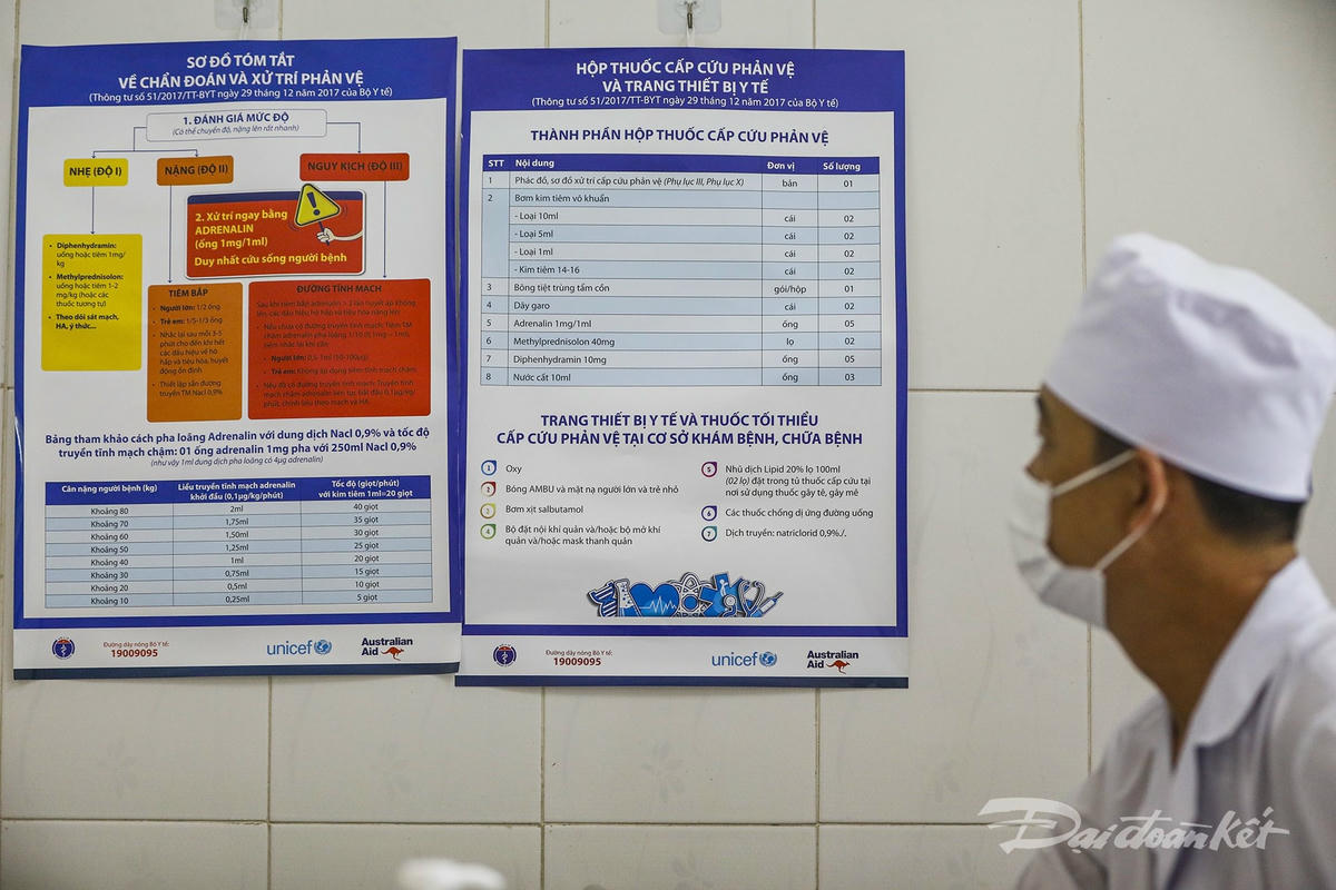 Những người dân đến tham gia thử nghiệm lâm sàng vaccine Nanocovax ngồi giữ đúng khoảng cách, đeo khẩu trang, thực hiện từng bước theo hướng dẫn. Ảnh: Quang Vinh. Người dân ở các địa phương đến Trung tâm y tế huyện Văn Lâm, Hưng Yên được chia theo các khung giờ khác nhau, đảm bảo không tập trung đông người, không có sự quá tải. Ảnh: Quang Vinh. Từng người vào khám sàng lọc theo hướng dẫn. Các y bác sĩ tư vấn kĩ từng trường hợp để người dân nắm rõ được quá trình thực hiện tiêm chủng vaccine Nanocovax. Ảnh: Quang Vinh. Các tài liệu về việc xử trí phản vệ sau tiêm được dán tại các phòng tiêm. Ảnh: Quang Vinh. Các y bác sĩ đều chú trọng từng khâu, từng bước, đảm bảo các quy trình được thực hiện đúng theo quy định và hướng dẫn. Một dược sĩ của Sở Y tế tỉnh Hưng Yên thực hiện nhiệm vụ chuyên môn tại Trung tâm y tế huyện Văn Lâm, Hưng Yên. Ảnh: Quang Vinh. Các y bác sĩ thực hiện tiêm vaccine cho người dân. Ảnh: Quang Vinh. Sau tiêm, tình nguyện viên được theo dõi tại khu vực riêng đã được bố trí, có y bác sĩ theo dõi sát sao. Khu vực này cũng được chia làm nhiều phòng khác nhau, đảm bảo quy định phòng, chống dịch Covid-19. Ảnh: Quang Vinh.