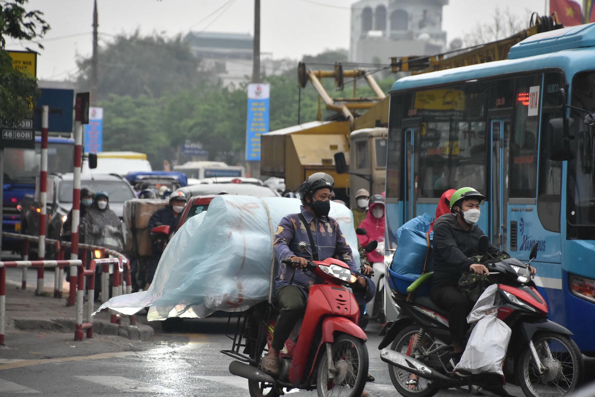 Hôm nay (11/4) là ngày cuối cùng trong kì nghỉ lễ giỗ Tổ Hùng Vương kéo dài 3 ngày. Cũng từ chiều nay, rất nhiều người dân đã quay trở lại Hà Nội để tiếp tục công việc và học tập.Ghi nhận của PV Đại Đoàn Kết Online, tại khu vực cửa ngõ phía Nam, đoạn nút giao Pháp Vân - QL 1A - Hoàng Liệt, các phương tiện tăng lên đột biến từ 15h chiều.Lực lượng chức năng đã phải có mặt từ sớm để phân luồng và điều tiết giao thông.Đội CSGT số 14 đã bố trí lực lượng ở tất cả các điểm giao cắt và các tuyến tuần tra để đảm bảo an toàn giao thông trên tuyến cho người dân được đi lại thuận tiện và an toàn.Do trời đổ mưa nên càng khiến tình trạng giao thông trở nên "nghẹt thở" hơn.Nhiều người tay xách nách mang hành lý từ quê trở về Hà Nội sau thời gian dài nghỉ lễ.Những đoạn đường gần các bến xe Giáp Bát, Nước Ngầm, các phương tiện di chuyển khó khăn...Hàng dài phương tiện nối đuôi nhau trên đường Giải Phóng.Khu vực đường Vành đai 3, đoạn Nguyễn Xiển, Khuất Duy Tiến...tình trạng giao thông cũng đông đúc không kém.Khu vực ngã tư Trường Chinh - Láng, các phương tiện nhích từng chút một hướng vào trung tâm thành phố.Ngã tư Xuân Thuỷ - Hồ Tùng Mậu có phần thông thoáng hơn, các phương tiện di chuyển chậm.Càng về chiều tối, lượng phương tiện đổ về càng đông đúc...