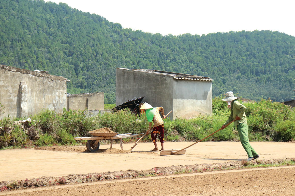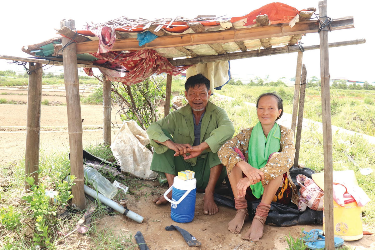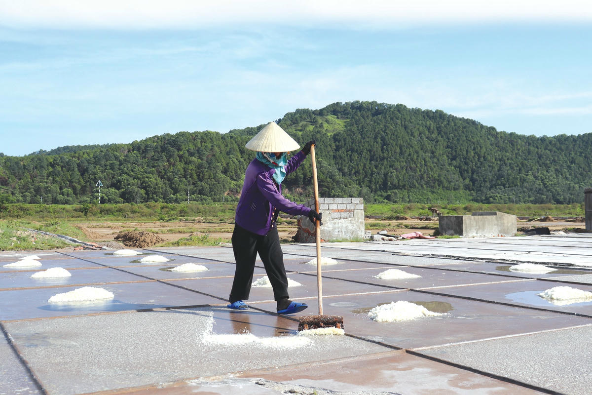 Dưới cái nắng như đổ lửa vào giữa trưa một ngày cuối tháng 7, từng tốp các ông, bà tuổi cao niên ở xã Hòa Lộc, huyện Hậu Lộc (Thanh Hóa) bắt đầu di chuyển ra cánh đồng muối Tam Hòa. Hai vợ chồng ông Trần Văn Bảo và bà Phạm Thị Dung (trú thôn 1, xã Hòa Lộc) bước xuống ruộng muối, bắt đầu công việc. Ông Bảo dùng chiếc cào đẩy hỗn hợp trông giống cát lộn đất đang nằm rải rác ở trên ruộng.