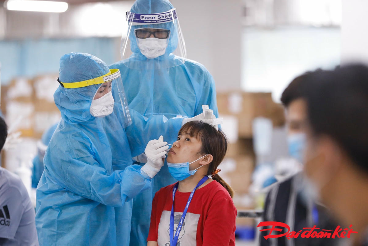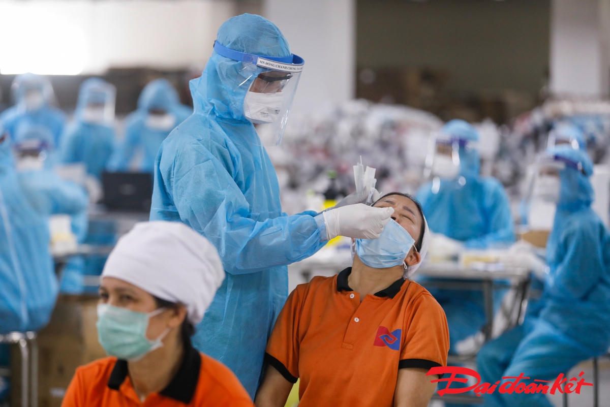[ẢNH] Xuyên đêm lấy mẫu xét nghiệm Covid-19 cho 10 nghìn công nhân KCN Quang Châu