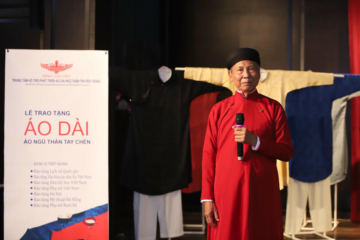 Chiều 19/11, Trung tâm Hỗ trợ phát triển Áo dài ngũ thân truyền thống - Câu lạc bộ Đình làng Việt đã tổ chức lễ trao tặng 12 bộ áo ngũ thân truyền thống tới 7 bảo tàng. 12 trang phục áo dài ngũ thân sẽ được các nghệ nhân trao đến: Bảo tàng Lịch sử Quốc gia, Bảo tàng Văn hóa các dân tộc Việt Nam, Bảo tàng Dân tộc học Việt Nam, Bảo tàng Phụ nữ Việt Nam, Bảo tàng Hà Nội, Bảo tàng Mỹ thuật Đà Nẵng và Bảo tàng Phụ nữ Nam Bộ.