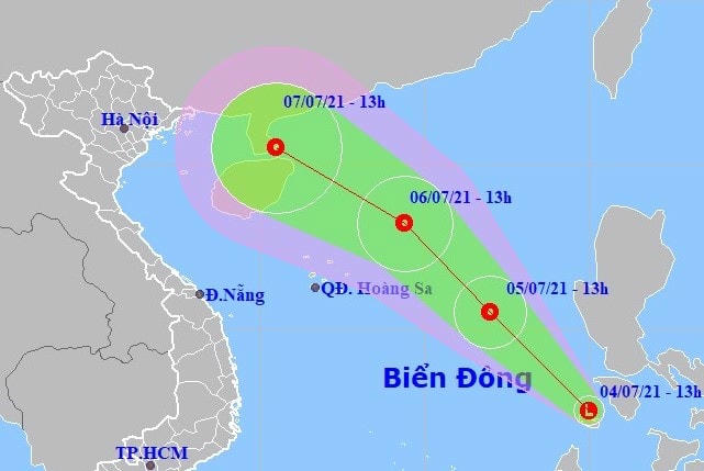 Văn bản nêu rõ, chiều ngày 4/7, trên khu vực miền Trung Philippines xuất hiện một vùng áp thấp. Hồi 13h00, vị trí trung tâm vùng áp thấp ở vào khoảng 12,0-13,0 độ vĩ Bắc; 119,5-120,5 độ kinh Đông. Dự báo trong 24 giờ tới, vùng áp thấp di chuyển theo hướng Tây Bắc và có khả năng mạnh lên thành áp thấp nhiệt đới, gây gió mạnh cấp 6, giật cấp 8.