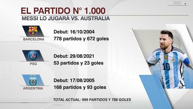 Siêu sao khoác áo PSG đã trải qua 999 trận đấu trong sự nghiệp đầy vinh quang, ghi 788 bàn thắng dưới màu áo Barcelona (778 trận, 672 bàn, 303 kiến tạo), PSG (53 trận, 23 bàn, 29 kiến tạo) và Argentina (168 trận, 93 bàn, 53 kiến tạo).