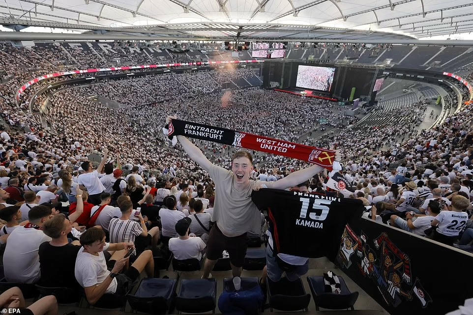 Hình ảnh CĐV Frankfurt tràn xuống sân vận động ăn mừng chức vô địch Europa League.