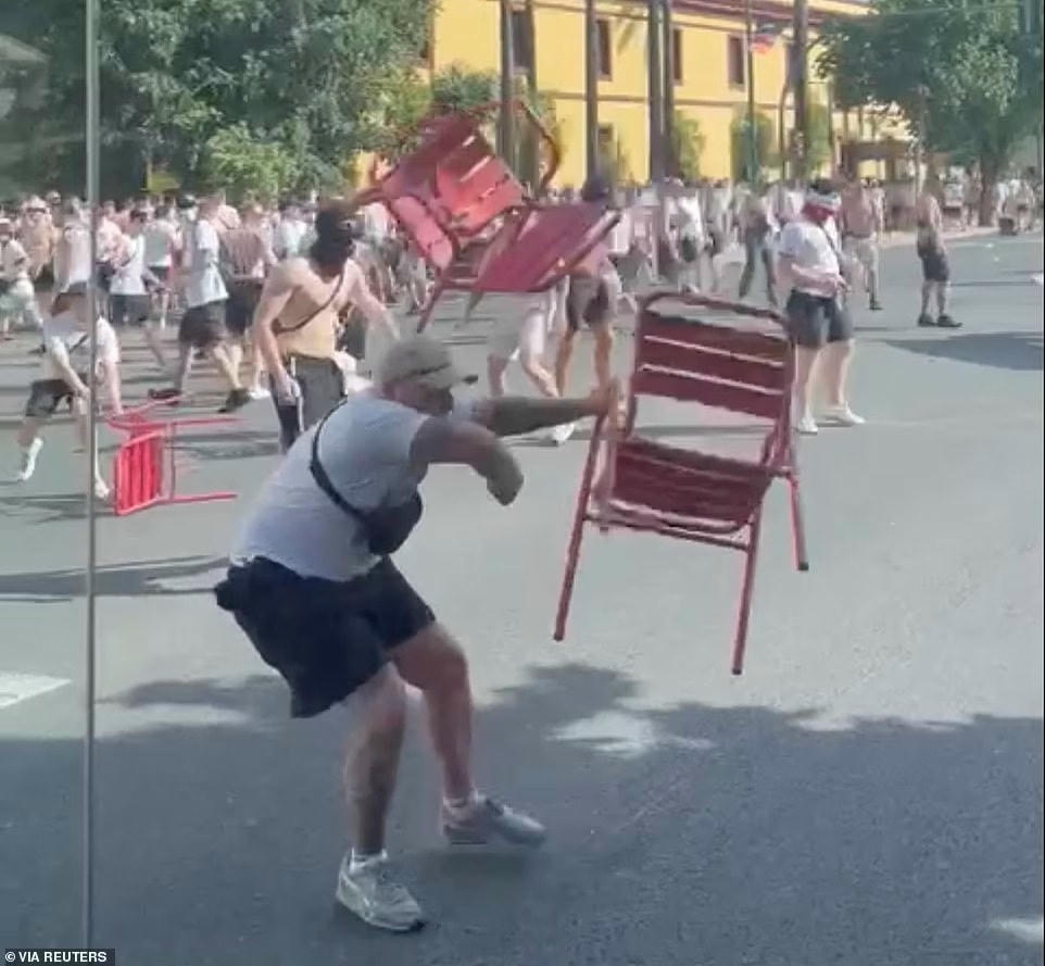 Các CĐV tấn công đối thủ bằng những chiếc ghế từ quán rượu bên đường.