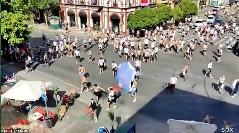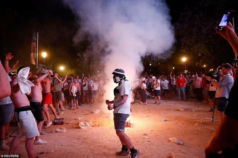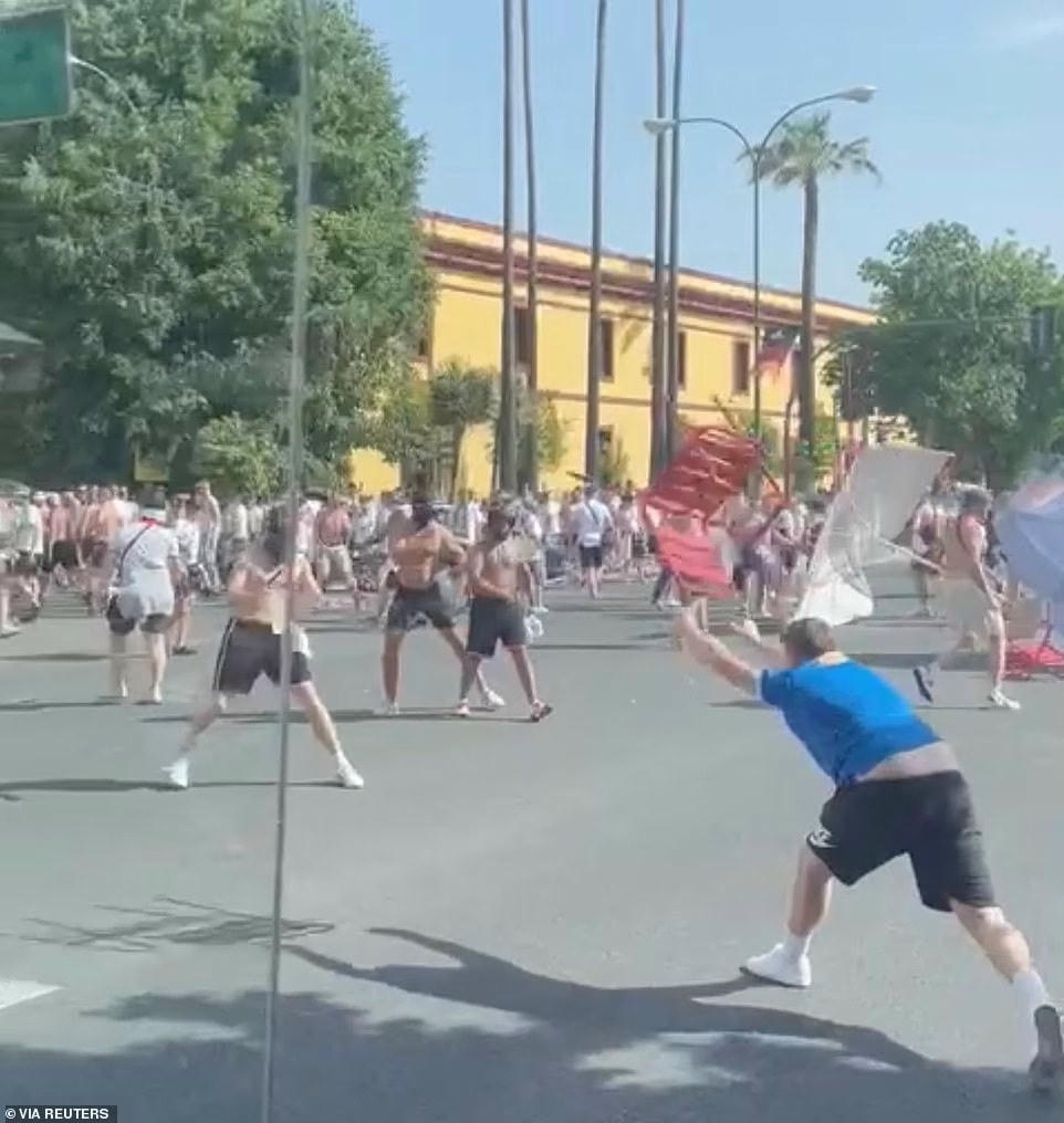 Hai nhóm CĐV lao vào nhau khi bày tỏ cảm xúc trái ngược sau trận chung kết được tổ chức ở SVĐ của Seville (Tây Ban Nha).