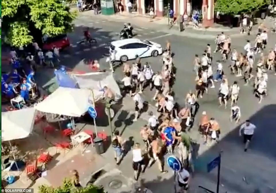 Ẩu đả kinh hoàng đã xảy ra trên đường phố Tây Ban Nha khi cổ động viên của Rangers lao vào tấn công người hâm mộ của Frankfurt sau khi chứng kiến đội nhà thất bại trong trận chung kết Europa League.