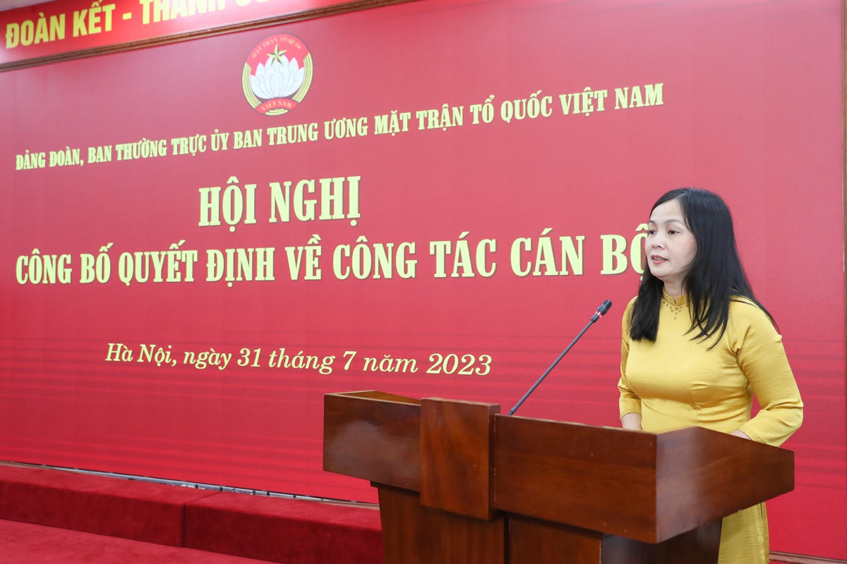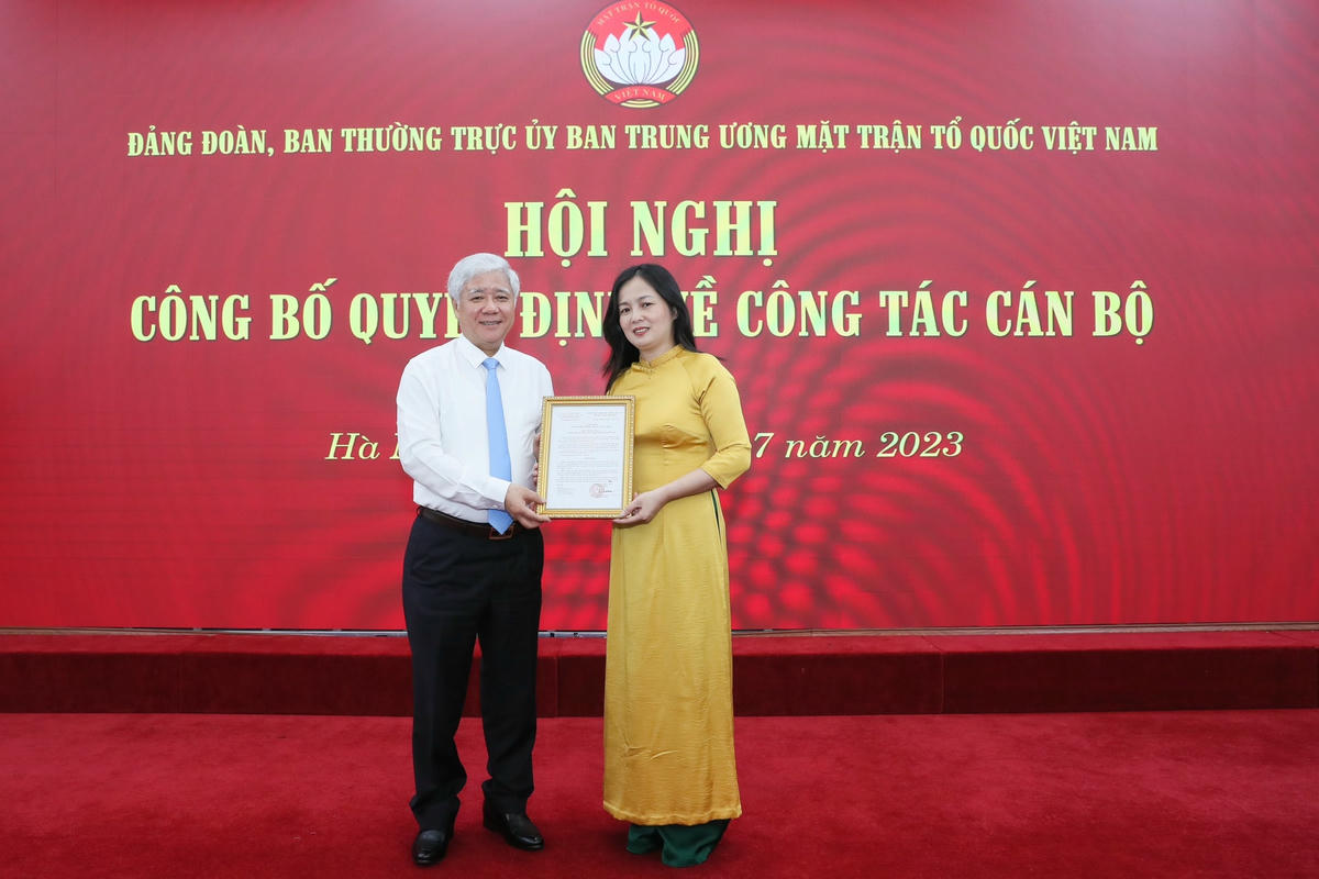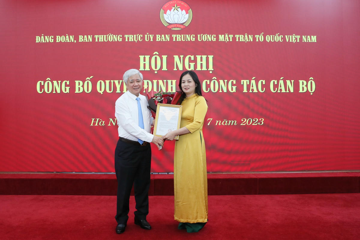 Được sự đồng ý của Đảng đoàn, Ban Thường trực UBTƯ MTTQ Việt Nam, Bí thư Trung ương Đảng, Chủ tịch UBTƯ MTTQ Việt Nam Đỗ Văn Chiến đã ký Quyết định số 2012/QĐ-MTTW-BTT ngày 24/7/2023 của Ban Thường trực UBTƯ MTTQ Việt Nam về việc điều động, bổ nhiệm công chức lãnh đạo, quản lý.