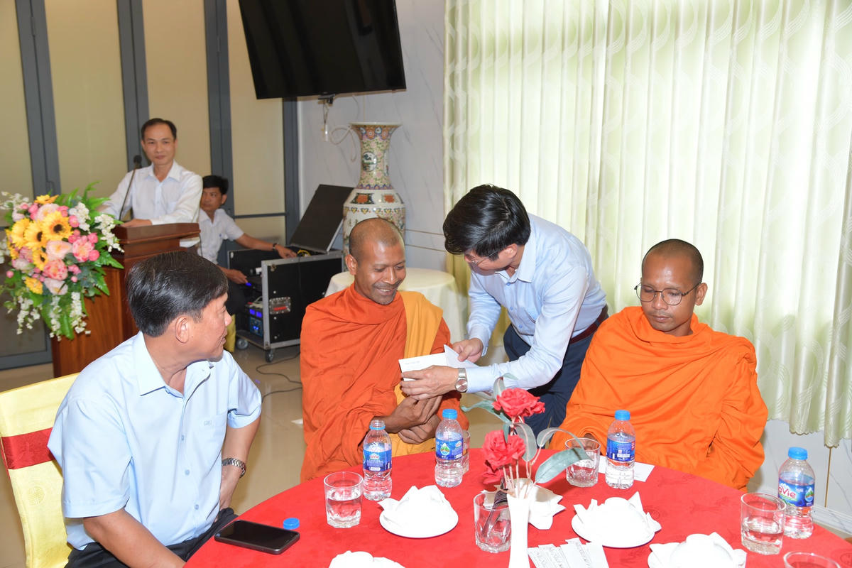 Dịp này, lãnh đạo tỉnh đã trao tặng các phần quà đến các vị chức sắc, người có uy tín trong đồng bào Khmer.