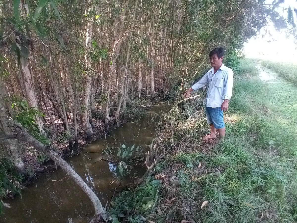 "Tình trạng trang trại chăn nuôi heo xả thải, gây ô nhiễm nguồn nước đã kéo dài nhiều năm nay. Về mùa mưa, nước ngấm qua những con mương, ruộng lúa. Còn đến mùa nắng thì thật kinh khủng, mùi tanh tanh hôi thối giống như phân heo bốc lên nồng nặc ô nhiễm cả khu vực rộng”, anh Thắng bức xúc nói.