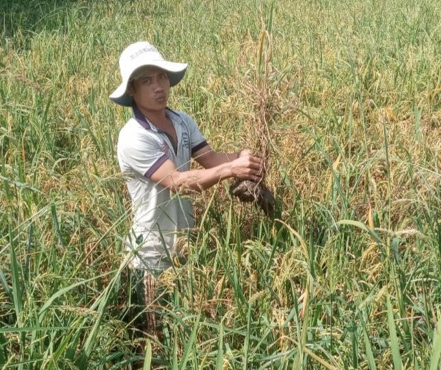 Không riêng gì gia đình ông Thắng mà nhiều hộ dân khu vực này đều cùng chung cảnh ngộ. 2 ha đất trồng lúa của gia đình anh Nguyễn Văn Đằng nằm gần trại heo của ông Lâm Hồ Nguyễn phải gánh chịu tình cảnh liên tục thất mùa, bỏ vụ. Vốn là hộ thuộc diện hộ nghèo nên anh Đằng đã thuê mướn 2 đất này canh tác là sinh kế chính của gia đình, thê nhưng nhiều vụ mùa liền canh tác không hiệu quả, lúa thất bát không đạt năng suất, có khi đang trổ bông đã bị chết mòn héo hắt. Vuốt những bông lúa mới trổ nhưng bị héo khô không kết hạt, ông Đằng buốt ruột khẳng định, lúa tôi đang trổ bông nhưng bị nguồn nước ô nhiễm từ trang trại ông Lâm Hồ Nguyễn làm ảnh hưởng đến ruộng lúa tôi bị cháy lá (xèo) với diện tích hơn 3000m2 ruộng. Lúa không thể thu hoạch được, đồng thời phần diện tích còn lại có khả năng bị nhiễm lan rộng ra tiếp, tôi cố gắng khắc phục bằng cách bơm phun thuốc dưỡng nhưng vẫn không hiệu quả và khắc phục được tình trạng cháy lá, chết thân lúa.
