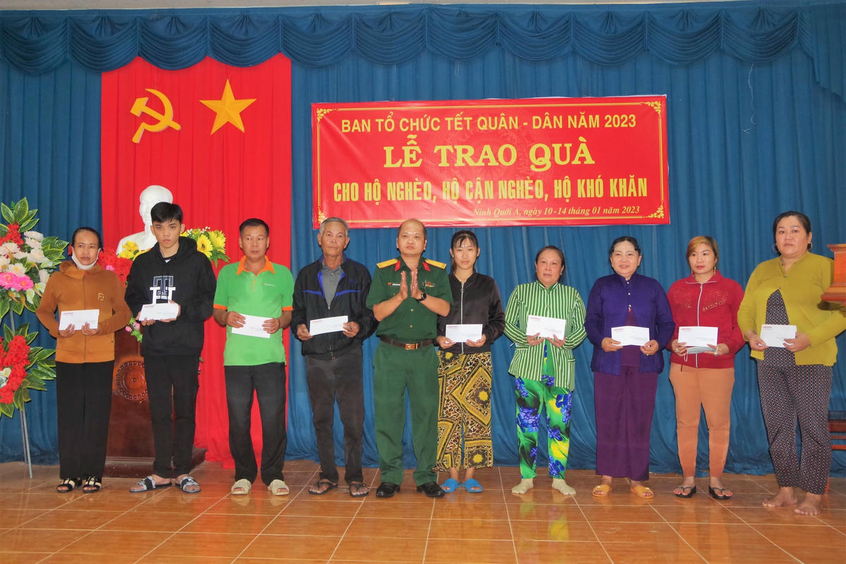 Tại buổi lễ Tổng kết, nhiều gia đình chính sách, hộ nghèo, gia đình có hoàn cảnh khó khăn, gia đình thanh niên tại ngũ, gia đình thanh niên chuẩn bị nhập ngũ, học sinh có hoàn cảnh khó khăn trên địa bàn xã Ninh Quới A được nhận quà Tết và xe đạp để đón một mùa Xuân Quý Mão 2023 hạnh phúc, yên vui...