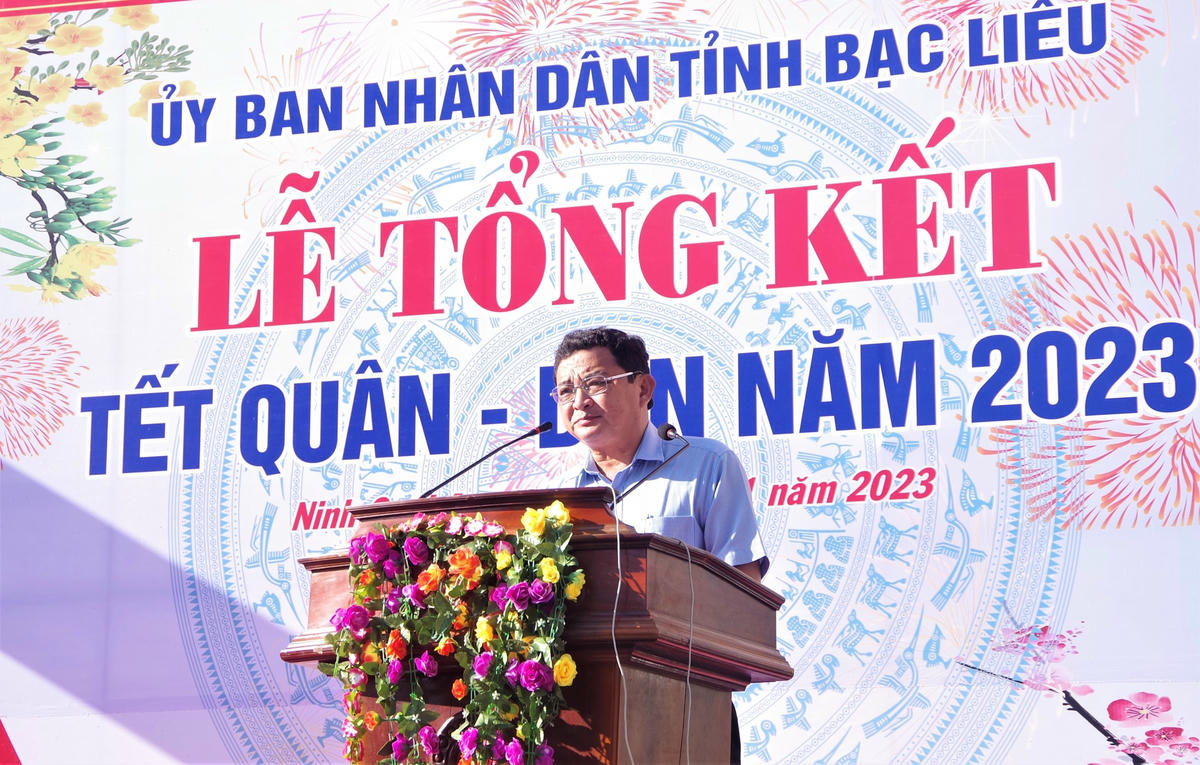 Phát biểu tại lễ Tổng kết Tết Quân – Dân, ông Nguyễn Văn Thới, Chủ tịch UBND huyện Hồng Dân thông tin, đây là năm thứ 2, địa phương được tỉnh chọn tổ chức Tết Quân Dân trên địa bàn huyện Hồng Dân. Tết Quân – Dân năm 2023 tổ chức tại xã Ninh Quới A, huyện Hồng Dân diễn ra nhiều hoạt động ý nghĩa và thiết thực, với nhiều nội dung, hình thức phong phú, đa dạng nhằm thiết thực đưa chủ trương của Đảng, Nhà nước hướng về cơ sở, nâng cao hiệu quả công tác chính sách hậu phương quân đội; giúp địa phương nâng cao chất lượng các tiêu chí xây dựng nông thôn mới nâng cao, kiểu mẫu, đồng thời góp phần nâng cao đời sống vật chất, tinh thần cho nhân dân; phần nào giúp các hộ gia đình chính sách và nhân dân đón Tết cổ truyền đầm ấm, vui tươi, qua đó thể hiện tinh thần tương thân, tương ái của địa phương nhằm chăm lo đời sống vật chất, tinh thần đối với người nghèo, đối tượng chính sách có hoàn cảnh khó khăn, góp phần xây dựng, củng cố khối đại đoàn kết toàn dân tộc, xây dựng thế trận lòng dân vững chắc.