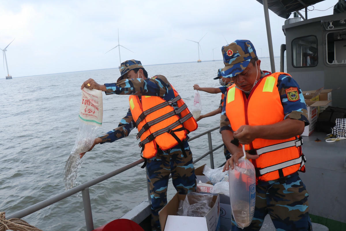 Ngày 29/4, ngành Nông nghiệp và Phát triển nông thôn huyện Đông Hải (tỉnh Bạc Liêu) phối hợp với Đồn Biên phòng Gành Hào (tỉnh Bạc Liêu) tổ chức thả 4,2 triệu con tôm giống tại cửa biển Gành Hào.