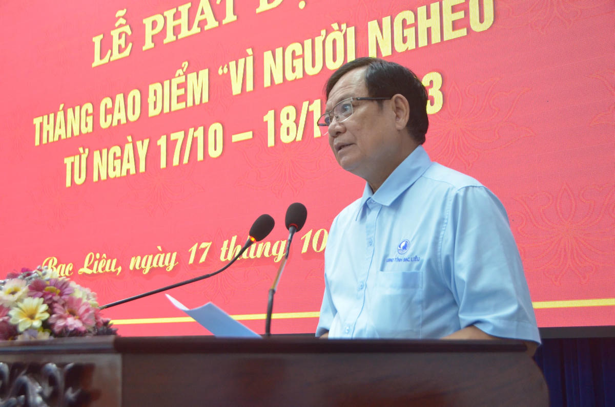 Chủ tịch UBMTTQ tỉnh Bạc Liêu Nguyễn Văn Hoà thay mặt Ban Thường trực UBMTTQ Việt Nam tỉnh; Ban Vận động, quản lý và sử dụng Quỹ “Vì người nghèo” tỉnh Bạc Liêu đã kêu gọi các tầng lớp nhân dân, các cấp, ngành, cơ quan, tổ chức, đơn vị, doanh nghiệp, doanh nhân, cán bộ, chiến sĩ, lực lượng vũ trang trong và ngoài tỉnh phát huy truyền thống đoàn kết, tương thân tương ái, tích cực hưởng ứng phong trào thi đua “Vì người nghèo - Không để ai bị bỏ lại phía sau” bằng những hành động thiết thực nhất.