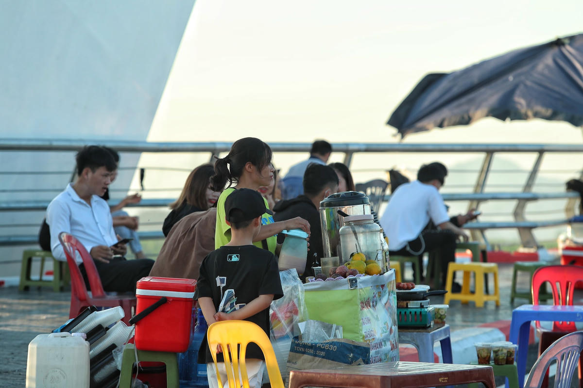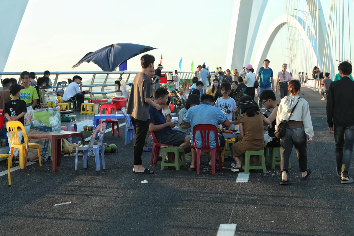 "Tầm 16h chiều khi thời tiết đã mát mẻ thì nhiều người dân quy tụ về đây để chụp ảnh, thể dục. Dù cầu bị chặn nhưng do háo hức quá nhiều người ngang nhiên vượt rào", anh Giang cho hay.