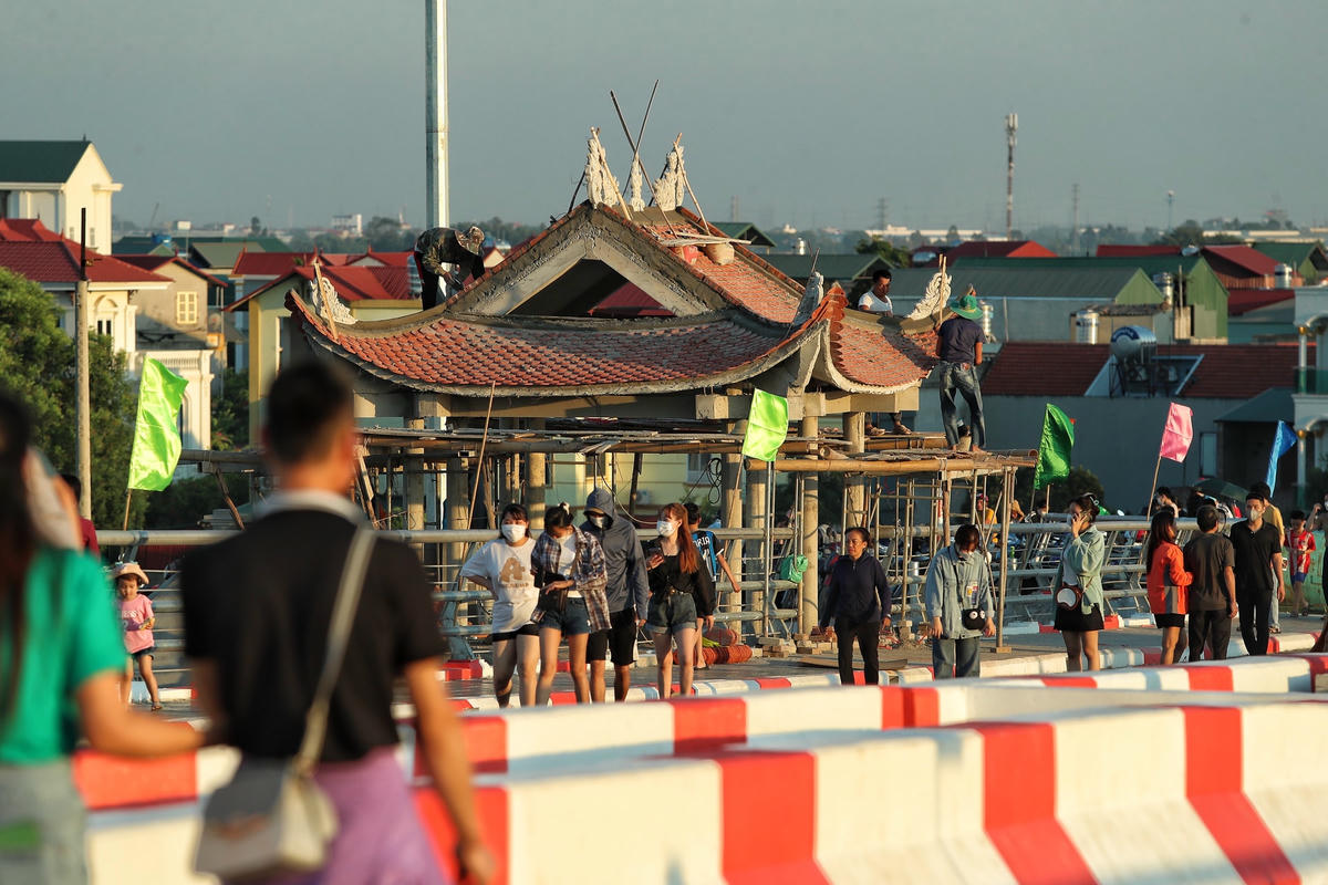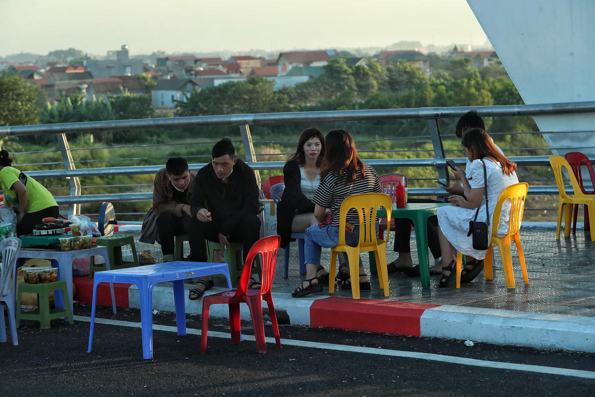 Anh Nguyễn Văn Giang trú tại Bắc Ninh cho hay, do cây cầu này rất đẹp vì vậy ngay sau khi cầu rõ hình hài nhiều người dân đã đến đây vui chơi, chụp ảnh.