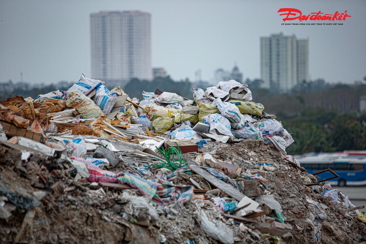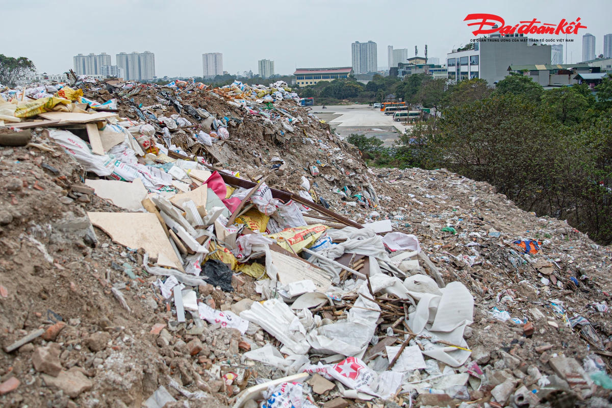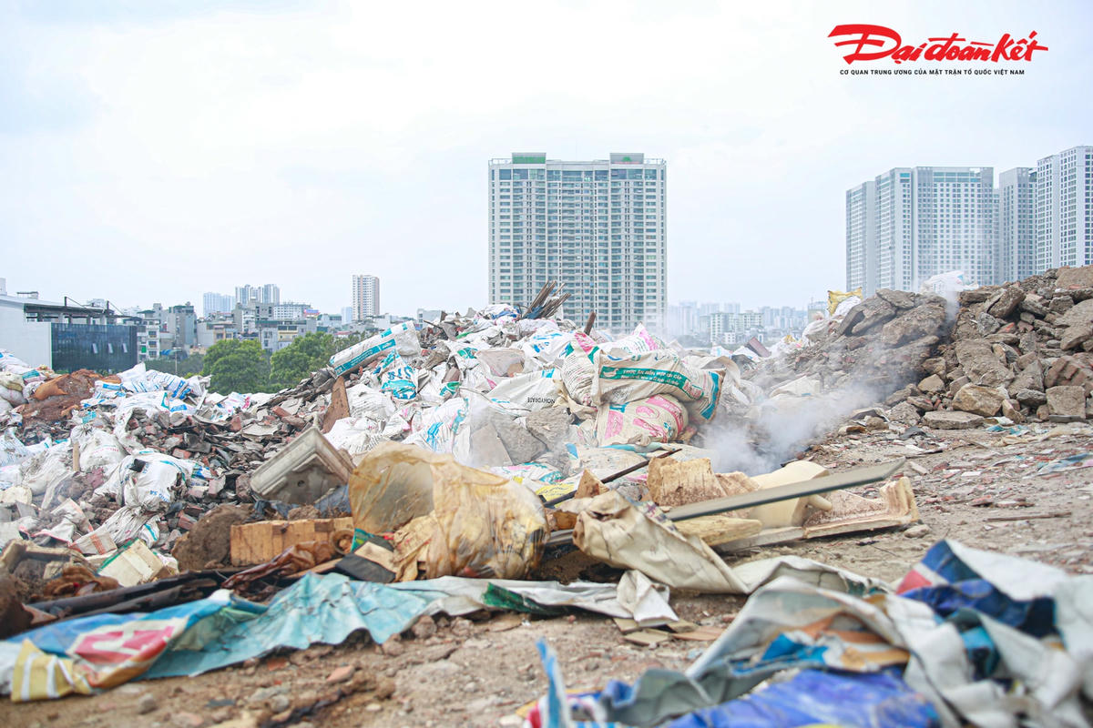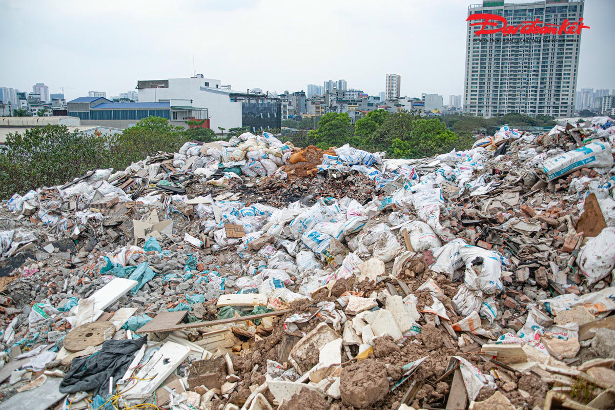 Theo ghi nhận của PV Đại Đoàn Kết Online, bãi rác tự phát bốc mùi hôi thối xuất hiện tại khu vực đường Nguyễn Xiển - Xa La (phía sau chung cư Bea Sky) khiến cuộc sống của người dân nơi đây bị đảo lộn.Bãi rác này rộng hàng trăm mét, cao khoảng 10 mét, đa phần chứa phế thải xây dựng.Những phế thải xây dựng này xuất phát từ quá trình phá dỡ, thi công nhà cửa, công trình, dự án… Bãi rác thải sinh hoạt bốc mùi hôi thối nồng nặc, ảnh hưởng nghiêm trọng đến cuộc sống của người dân tại khu vực này.Theo người dân tại chung cư Bea Sky cho biết, bãi rác này xuất hiện từ đầu năm 2022, hàng đêm có rất nhiều xe chở rác về đây đổ."Ngày nắng, ngày mưa mùi hôi thối đều bốc lên rất khó chịu. Đặc biệt, khi rác bị đốt, gió thổi về phía chung cư ám vào đồ đạc trong nhà”, người dân chung cư Bea Sky phản ánh. Bà Bùi Thị Kim Khuê, Chủ tịch UBND phường Đại Kim, quận Hoàng Mai cho biết, đây không phải vị trí quy hoạch bãi rác."Bãi rác tự phát này hình thành do tình trạng đổ trộm chất thải rắn", bà Bùi Thị Kim Khuê khẳng định.
