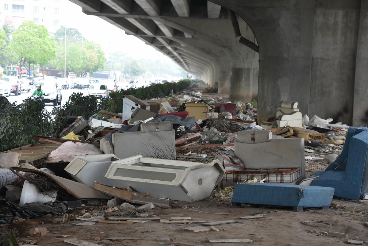 Khoảng trống giữa dải phân cách trên đường Vành đai 3 rộng khoảng 7m với hai hàng cây cảnh xung quanh, bỗng nhiên trở thành địa điểm lý tưởng để đổ trộm rác thải. Trong đó, nhức nhối nhất là đoạn từ cột trụ cầu T100 đến T112, đối diện chung cư Kim Văn - Kim Lũ (thuộc địa phận phường Đại Kim, quận Hoàng Mai).