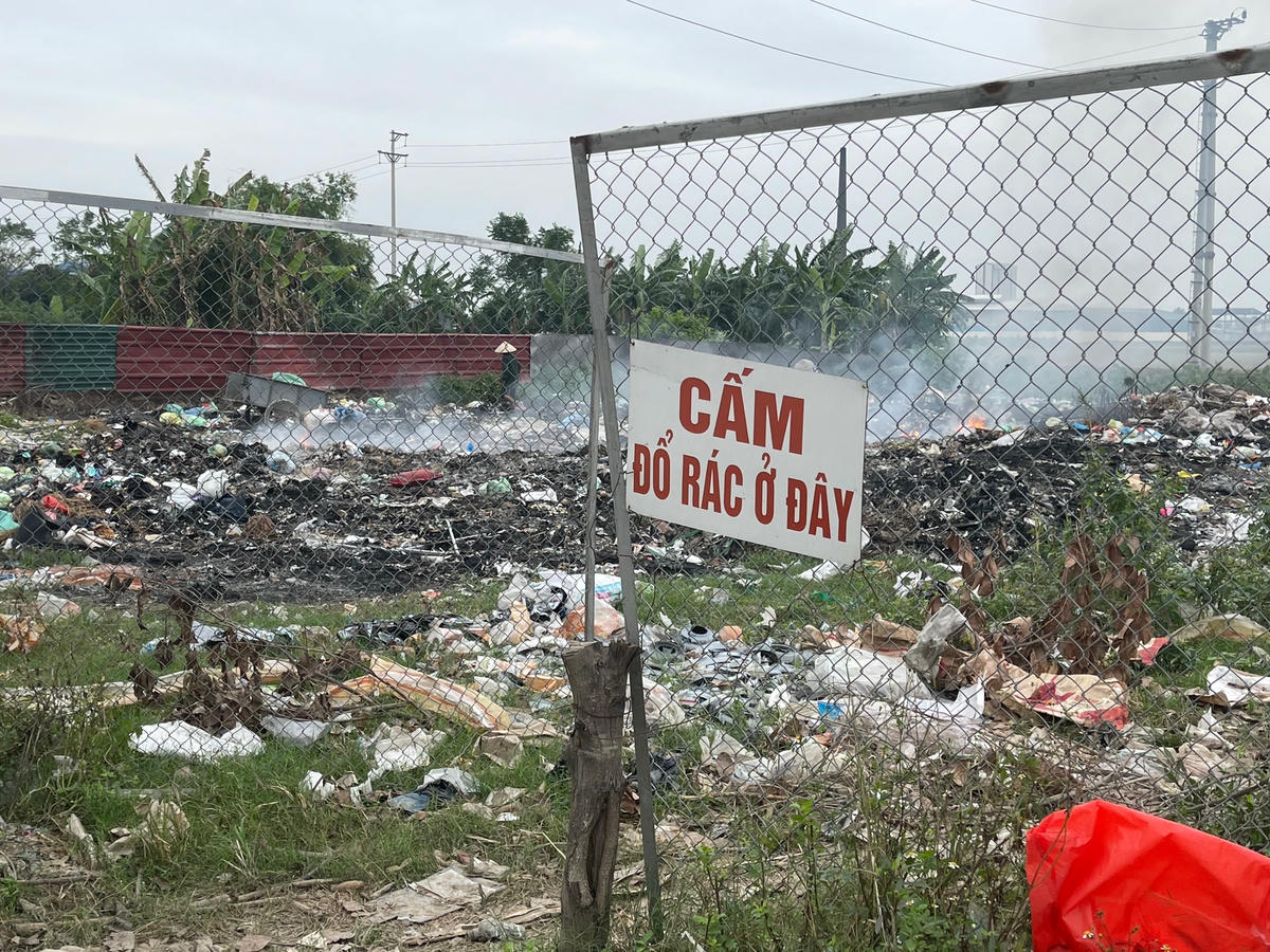 Tuy nhiên, khi phóng viên đi thực tế thì thấy bên trong khu vực có treo biển "cấm đổ rác" là một bãi rác vẫn đang nghi ngút khói.