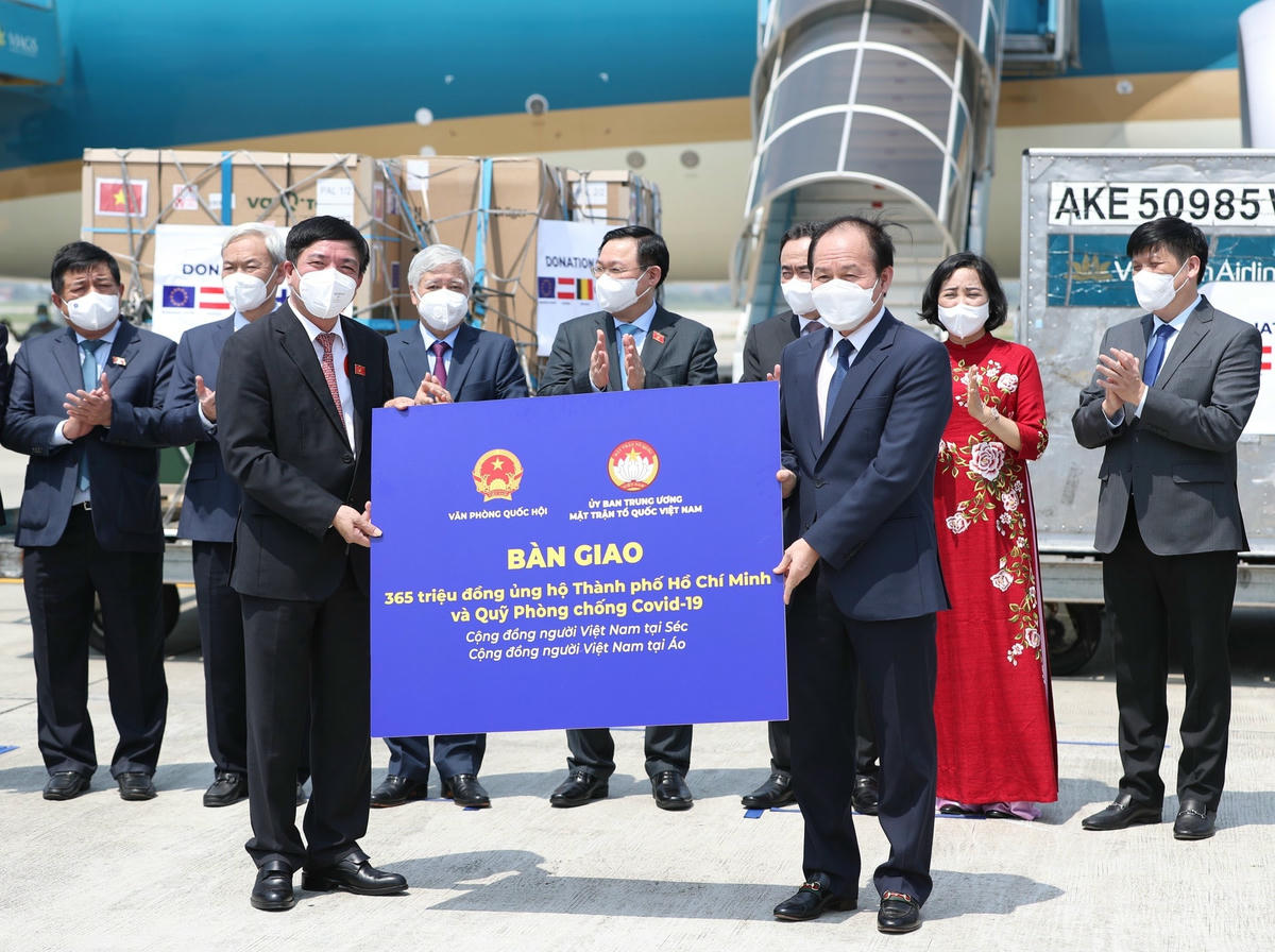 1. Ông Trần Bá Dương và kiều bào tại Đức tặng 1.200.000 bộ kit xét nghiệm nhanh Covid-19 trị giá 4.800.000 euro (tương đương 130 tỷ VND), trao tượng trưng tại Áo, hàng chuyển thẳng máy bay thương mại.