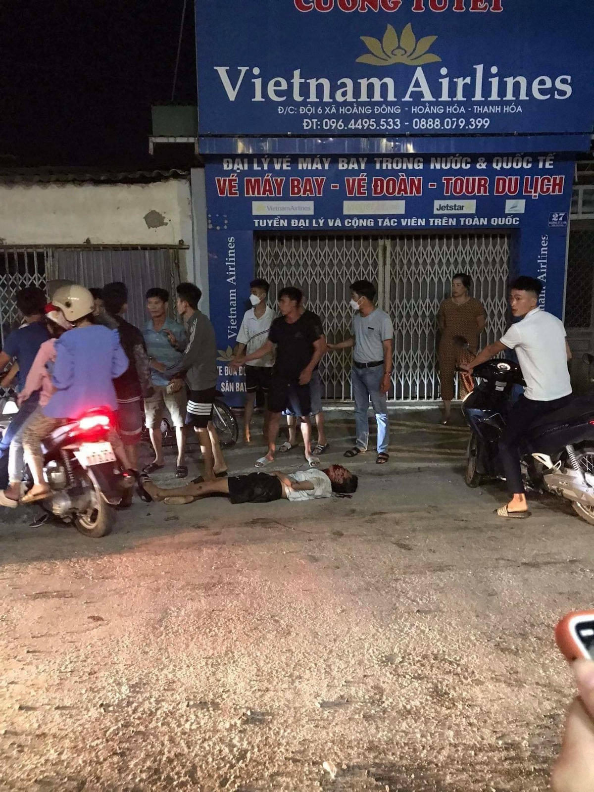 Cụ thể, theo ông Đạt, vụ việc xảy ra vào khoảng 21h tối ngày 10/9 (tức đêm Trung thu) tại đội 6, xã Hoằng Đông. Thời điểm trên, có 3 thanh niên (trú huyện Quảng Xương) di chuyển bằng 2 chiếc xe máy từ xã Hoằng Phụ đến xã Hoằng Đông. Khi đến đội 6, 1 người bị ngã xe, khiến mặt và phần ngực bị rách một vết rất sâu, đồng thời bị đứt luôn bàn tay.