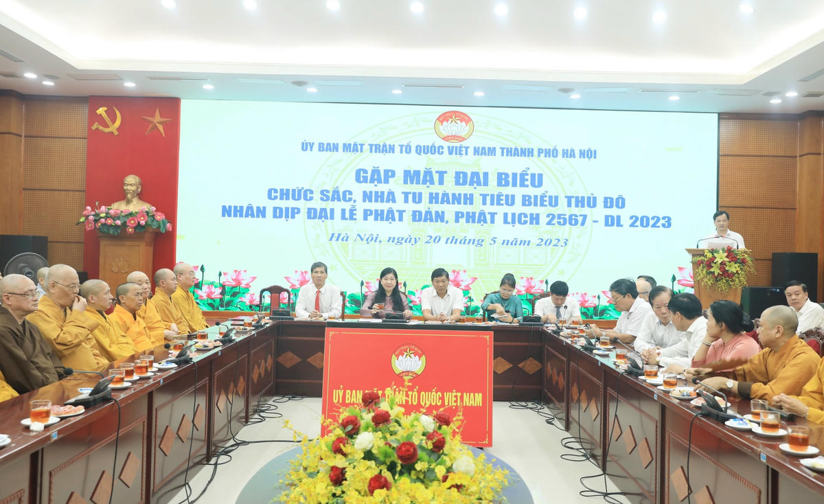 Ngày 20/5, Ủy ban MTTQ Việt Nam TP Hà Nội tổ chức gặp mặt đại biểu chức sắc, nhà tu hành tiêu biểu Thủ đô nhân dịp Đại lễ Phật đản, Phật lịch 2567-Dương lịch 2023. Chủ trì buổi gặp mặt có Chủ tịch Ủy ban MTTQ thành phố Hà Nội Nguyễn Lan Hương.