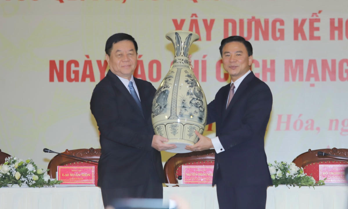 Chủ trì hội nghị có các ông: Lại Xuân Môn, Phó Trưởng ban Thường trực Ban Tuyên giáo Trung ương; Lê Quốc Minh, Tổng Biên tập Báo Nhân Dân, Phó Trưởng ban Tuyên giáo Trung ương, Chủ tịch Hội Nhà báo Việt Nam; Đỗ Trọng Hưng, Bí thư Tỉnh ủy Thanh Hóa…