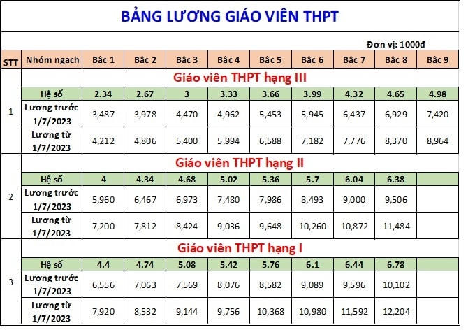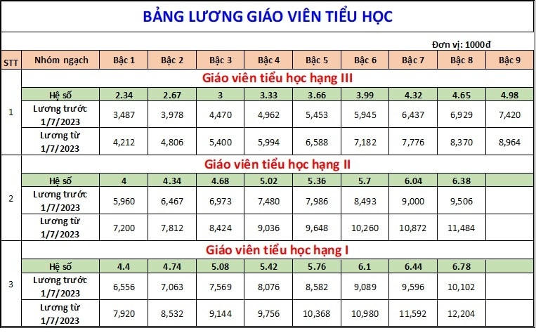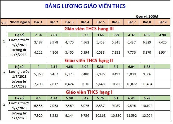 Bảng lương giáo viên thay đổi thế nào từ tháng 7 năm 2023?