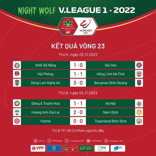 Theo bảng xếp hạng V-League 2022 sau vòng 23, Hà Nội FC "sảy chân" khi bị Thanh Hóa cầm hòa 1-1, Hoàng Anh Gia Lai vươn lên vị trí thứ 7 sau trận thắng Nam Định 2-0.
