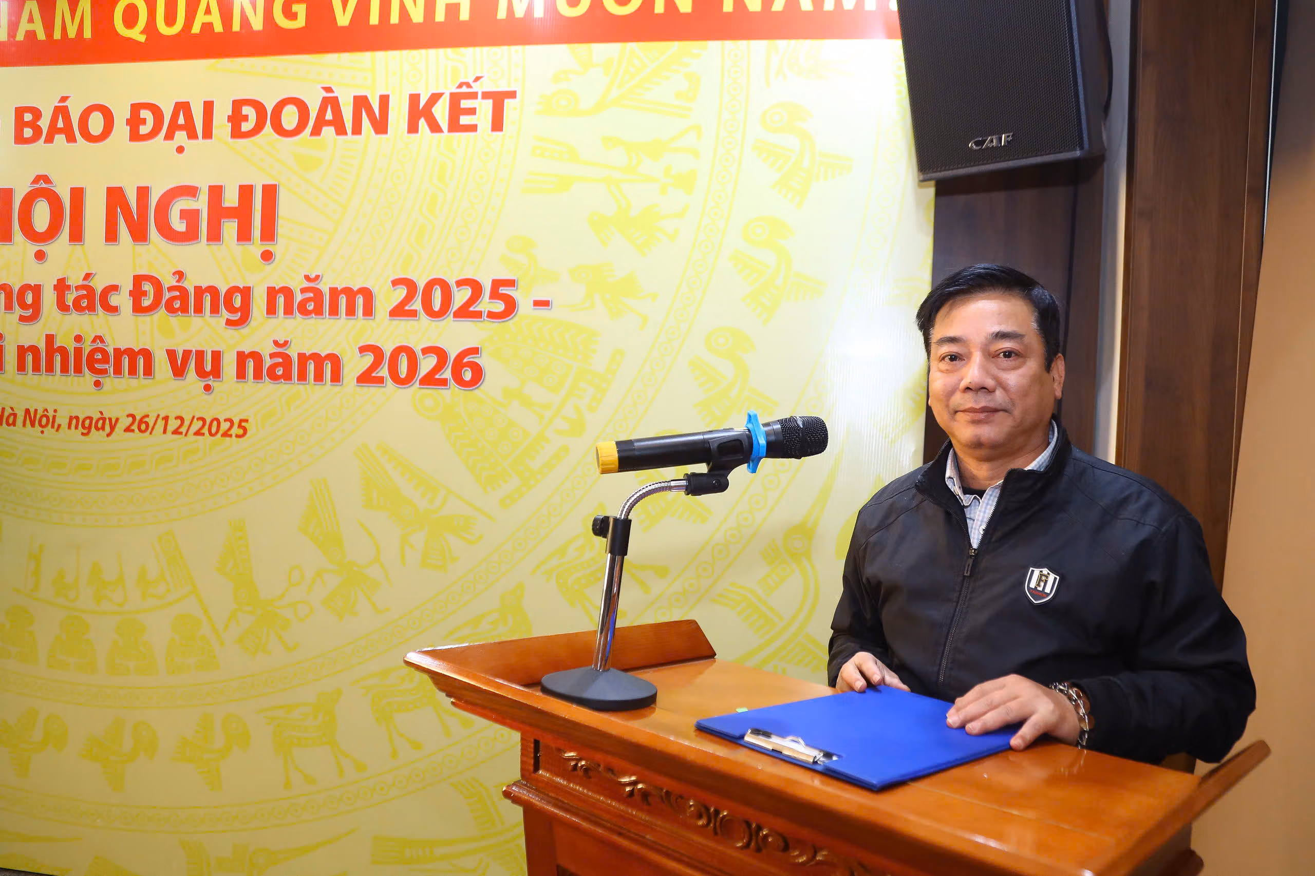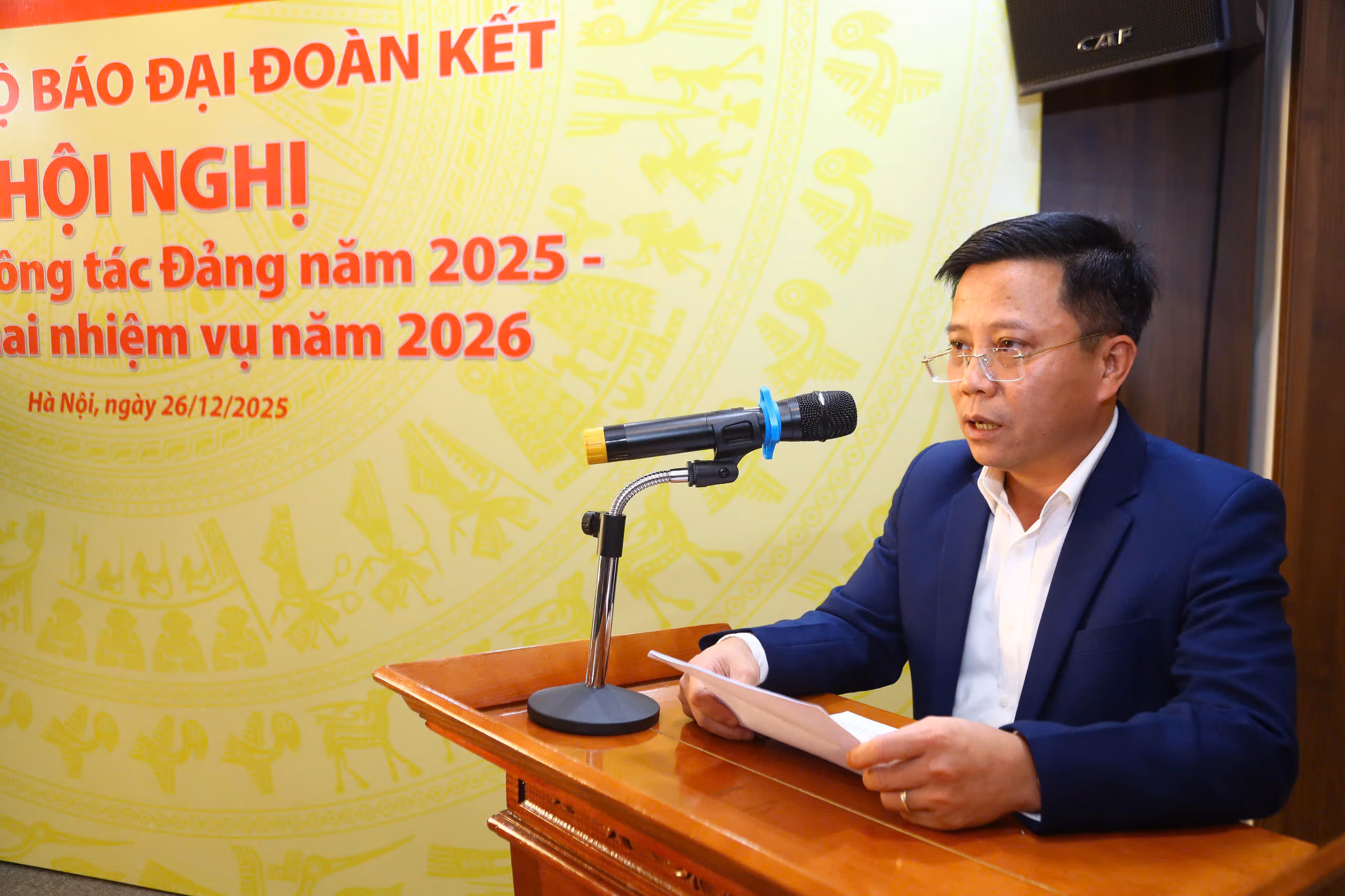 Ngày 26/12, tại Hà Nội, Đảng bộ Báo Đại đoàn kết tổ chức Hội nghị tổng kết công tác Đảng năm 2025, phương hướng, nhiệm vụ và giải pháp trọng tâm năm 2026. Đồng chí Trương Thành Trung, Ủy viên Ban Chấp hành Đảng bộ cơ quan Ủy ban Trung ương MTTQ Việt Nam, Bí thư Đảng ủy, Tổng Biên tập Báo Đại đoàn kết chủ trì hội nghị. Hội nghị được tổ chức theo hình thức trực tiếp kết hợp trực tuyến, với sự tham dự của toàn thể đảng viên Đảng bộ tại hội trường và các điểm cầu.