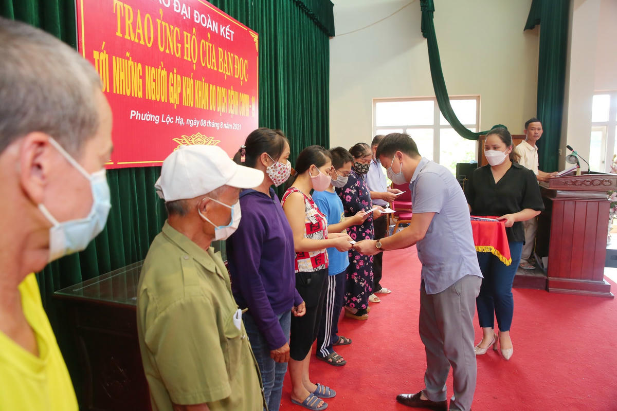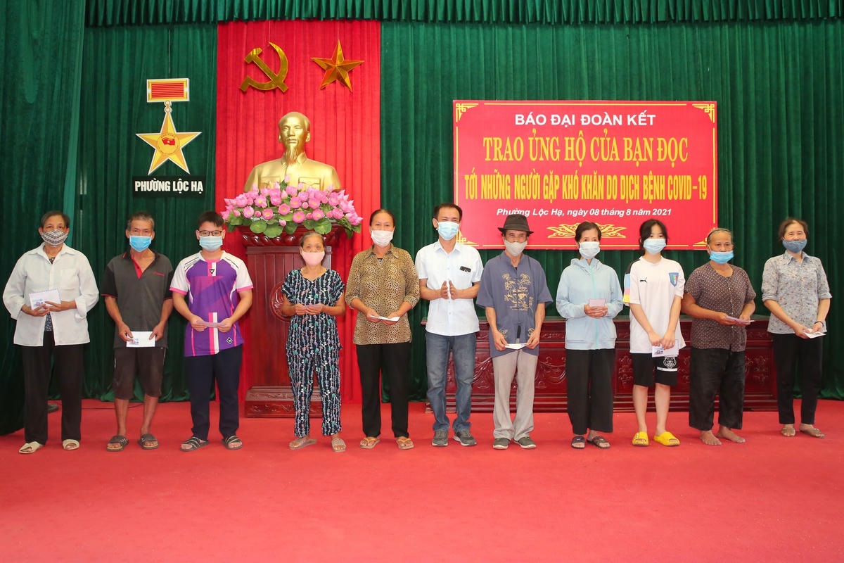 Thay mặt cấp ủy, chính quyền, MTTQ địa phương, ông Trần Mạnh Hà, Phó Bí thư Thường trực Đảng ủy phường Lộc Hạ cảm ơn tình cảm, sự sẻ chia, giúp đỡ của gia đình bà Trần Thị Hường, của Báo Đại Đoàn Kết đối với người dân địa phương trong lúc khó khăn.