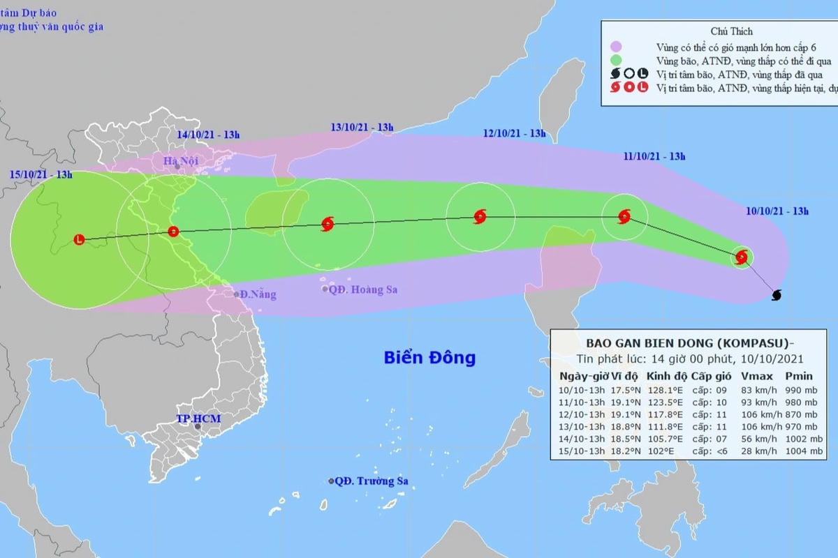 Theo Giám đốc Trung tâm Dự báo Khí tượng Thủy văn Quốc gia Mai Văn Khiêm, "Cơn bão Kompasu là một cơn bão mạnh khi ở trên biển, di chuyển nhanh với cường độ mạnh hơn bão số 7, có khả năng ảnh hưởng đến khu vực Bắc Bộ và Bắc Trung Bộ trong khoảng ngày 13-14/10 và khả năng gây ra một đợt mưa lớn cho khu vực này trong các ngày từ 13-15/10. Các tính toán dự báo của chúng tôi cũng cho thấy, trong ngày 16 -17/10, sẽ xuất hiện một cơn áp thấp nhiệt đới hoặc bão khác trên Biển Đông".