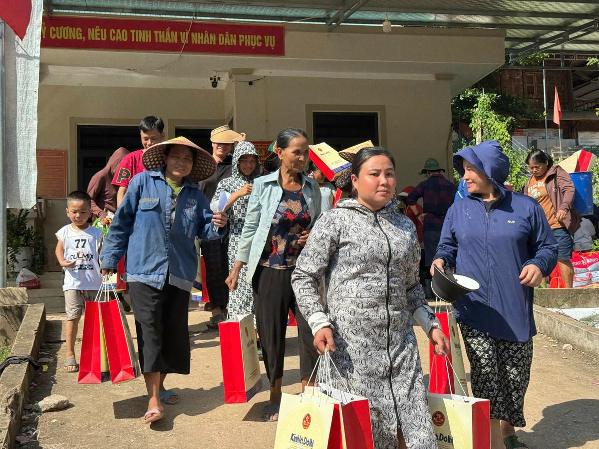 Đặc biệt, tại bản Phá Kháo - bản vùng sâu giáp biên giới Lào, hiện đang bị cô lập do sạt lở đường, Bí thư Chi bộ Thò Pa Lư (SN 1981) đã vượt rừng, lội suối cả ngày trời ra trung tâm xã để thay mặt 53 hộ dân nhận quà. Ông chia sẻ đầy xúc động: “Lũ cuốn đi hết đường sá, nhà cửa, tài sản. Hôm nay tôi đi bộ ra đây thay mặt bà con nhận quà, gửi lời cảm ơn sâu sắc đến Báo Kinh tế & Đô thị và các nhà hảo tâm đã không quên chúng tôi ở nơi xa xôi này.”