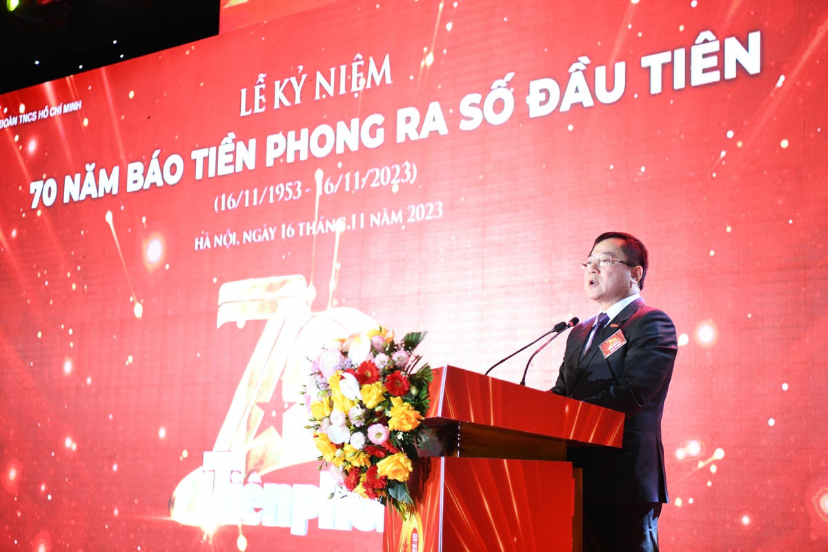 Trưởng ban Tuyên giáo Trung ương Nguyễn Trọng Nghĩa nhấn mạnh, Báo Tiền Phong ra đời tại chiến khu Việt Bắc, trong giai đoạn chiến tranh, trải qua 70 năm xây dựng và trưởng thành, luôn phát huy tinh thần xung kích, tiền phong trong tuyên truyền các chủ trương, đường lối, chính sách của Đảng, Nhà nước; phản ánh khách quan, toàn diện mọi mặt đời sống xã hội, nhất là các tâm tư, tình cảm, nguyện vọng của thế hệ trẻ.