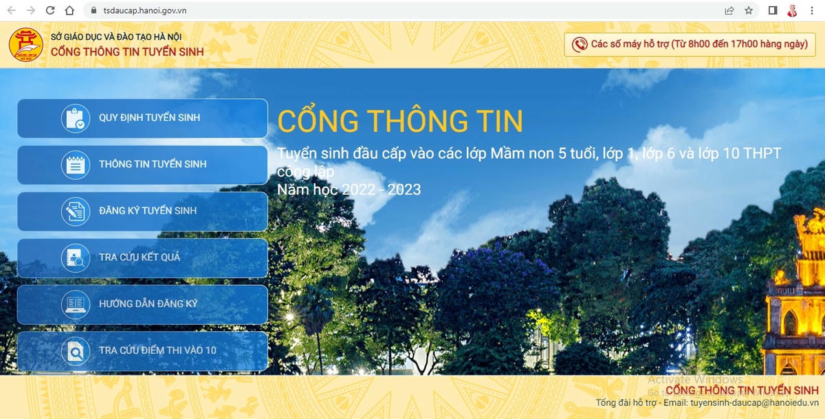 Năm học 2022-2023, thành phố Hà Nội duy trì song song hai hình thức tuyển sinh trẻ mầm non, học sinh lớp 1 và lớp 6 là trực tiếp tại các nhà trường và trực tuyến (thông qua Cổng thông tin tuyển sinh, địa chỉ: http://tsdaucap. hanoi.gov.vn). Tùy điều kiện cụ thể, phụ huynh học sinh có thể lựa chọn hình thức đăng ký tuyển sinh phù hợp.