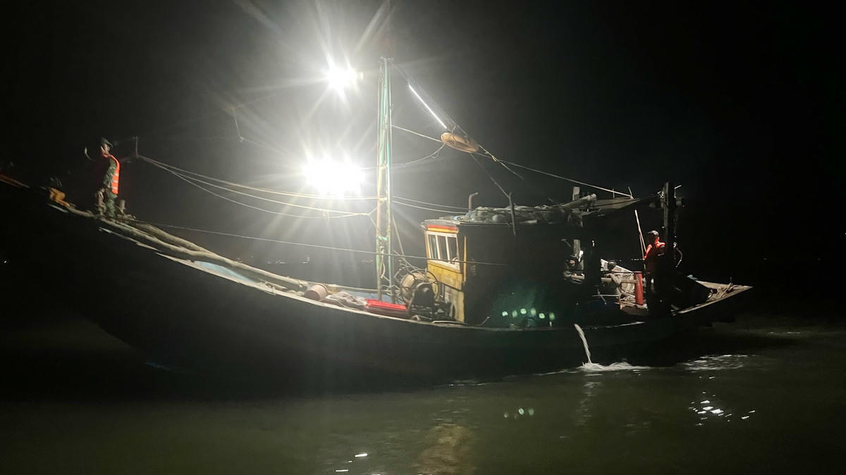 Thời điểm phát hiện, trên tàu có chủ tàu và 3 thuyền viên đang thực hiện hành vi sử dụng lưới giã cào khai thác hải sản sai vùng biển quy định.