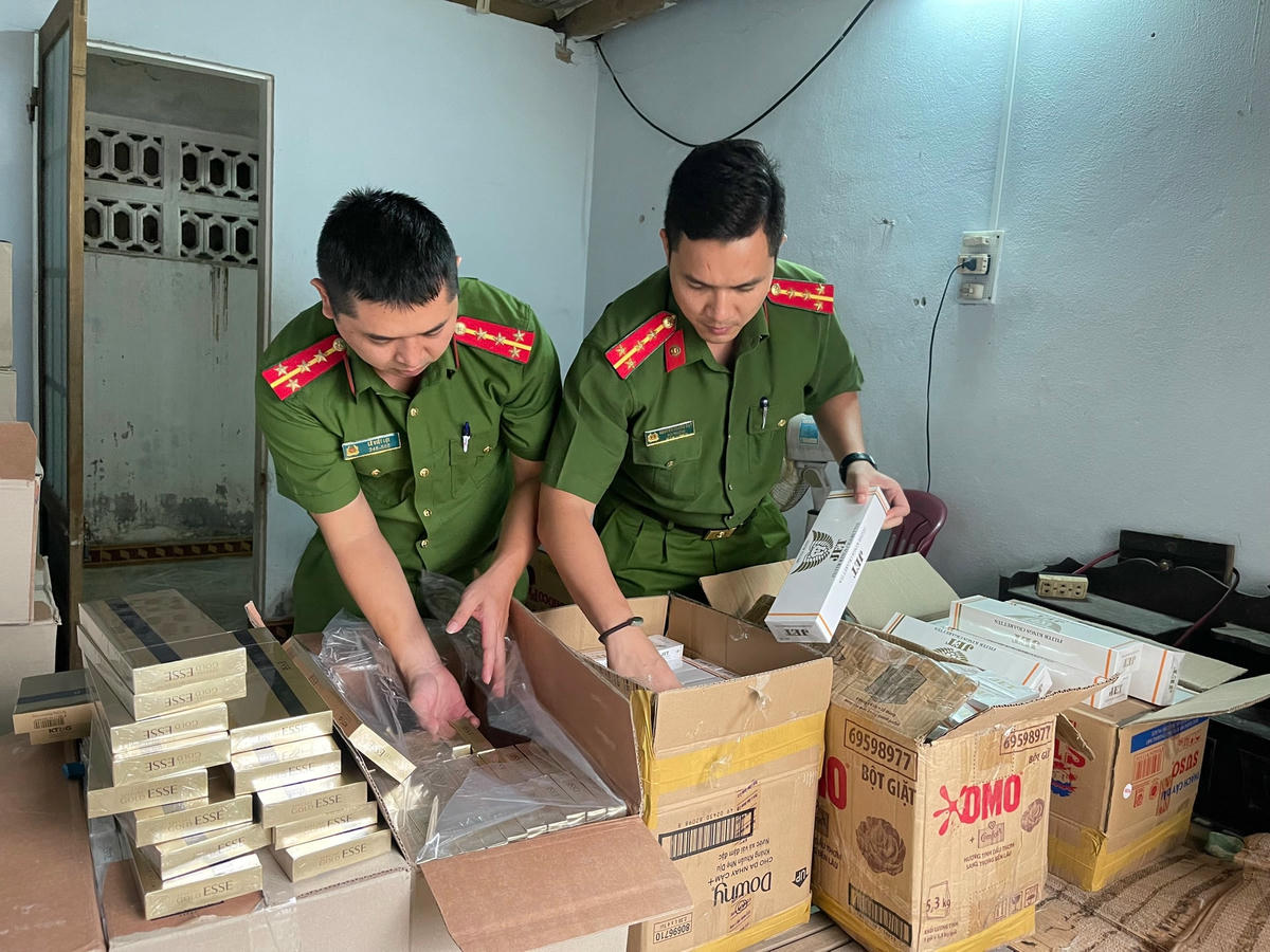Tại thời điểm kiểm tra, lực lượng Công an đã thu giữ 13.000 gói thuốc lá gồm các nhãn hiệu ESSE GOLD, ESSE Change, ESSE Menthol, ESSE LIGHTS và thuốc lá Jet.