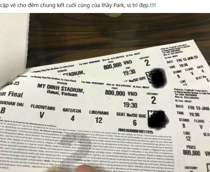 Trong bài viết, tác giả bài báo khá bất ngờ, khi các mệnh giá vé được đẩy lên cao 3 đến 4 lần. Bài báo thông tin: “Tối ngày 12/1, trước sân Mỹ Đình xuất hiện nhiều người buôn vé, đem vé bán đội giá cao. Vé thông thường là 1 triệu đồng đã được nâng lên 4 triệu đồng. Trong khi đó, vé 800.000 đồng được rao bán với giá 3,2 triệu đồng”.