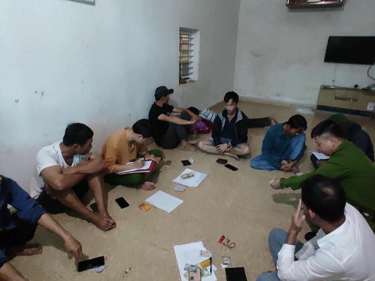 Tại đây, lực lượng chức năng phát hiện và bắt giữ Trần Nam Sơn (41 tuổi), Lê Đình Duẩn (41 tuổi), Lê Đức Thắng (41 tuổi), Đậu Đức Thắng (41 tuổi), Đậu Thanh Bình (45 tuổi) và Nguyễn Võ Dương (32 tuổi) đều trú tại xã Hương Giang khi đang sát phạt nhau trên chiếu bạc.