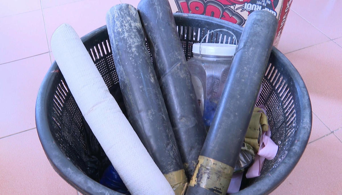 Quá trình kiểm tra tại hiện trường, lực lượng chức năng thu giữ 2 quả mìn tự gói, 4 thỏi thuốc nổ với trọng lượng 1,2 kg, 4 kíp và 6 đoạn dây cháy chậm.
